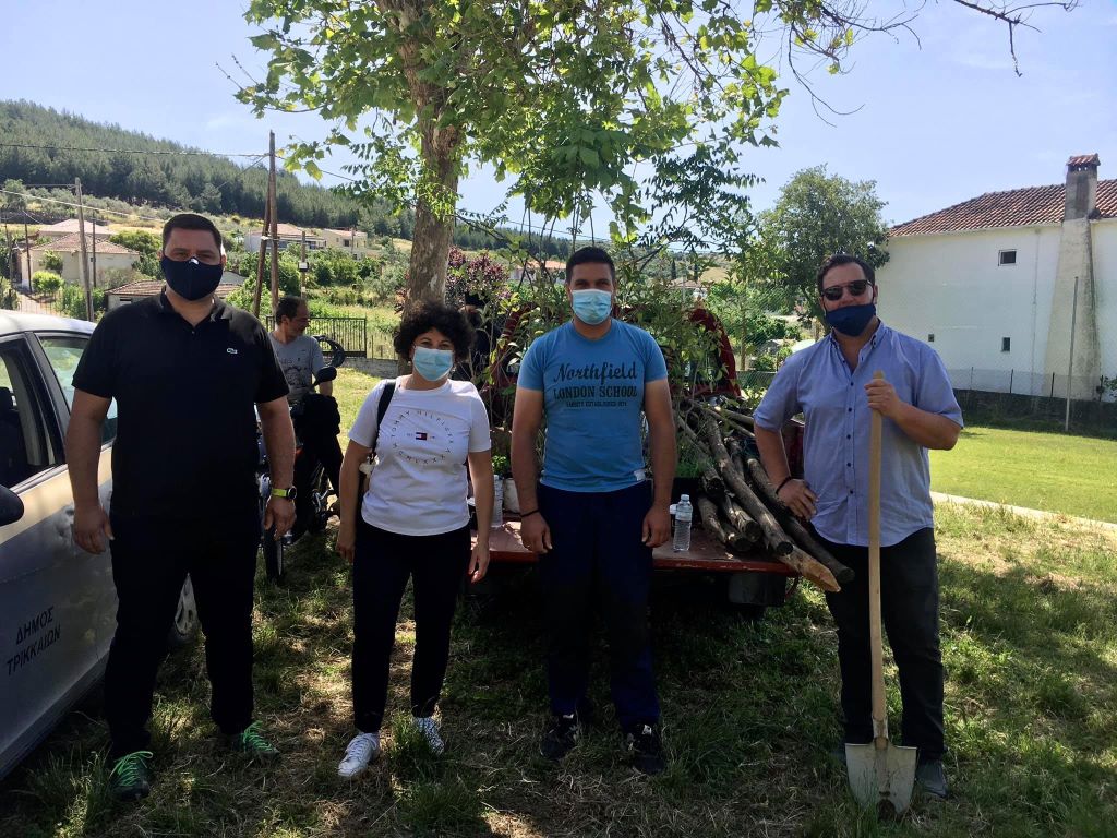 Από το πρωί, οι κάτοικοι του χωριού με πρωταγωνιστές τα μικρά παιδιά, οι γονείς ο ιερέας, ο Μορφωτικός Σύλλογος, οι εκπαιδευτικοί αλλά και 3 αντιδήμαρχοι Τρικκαίων (Εφη Λεβέντη, Βασίλης Κρανιάς, Γιάννης Οικονόμου) έπιασαν… δουλειά, σκάβοντας και φυτεύοντας τα όμορφα αυτά δέντρα.