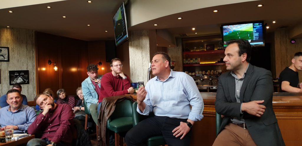 Παρουσία του δημάρχου Δημήτρη Παπαστεργίου ο πρόεδρος του Δ.Σ. Τρικκαίων και εκ νέου υποψήφιος με την «Επανεκκίνηση» Μιχάλης Λάππας, πραγματοποίησε μια πρωτότυπη «συνάντηση γνωριμίας» με νέους και νέες της πόλης. Έδωσαν το παρών φοιτητές και φοιτήτριες που επέστρεψαν στα Τρίκαλα για τις μέρες του Πάσχα και μέσα από ερωταπαντήσεις μοιράστηκαν τις αγωνίες τους για την πόλη που θέλουμε.