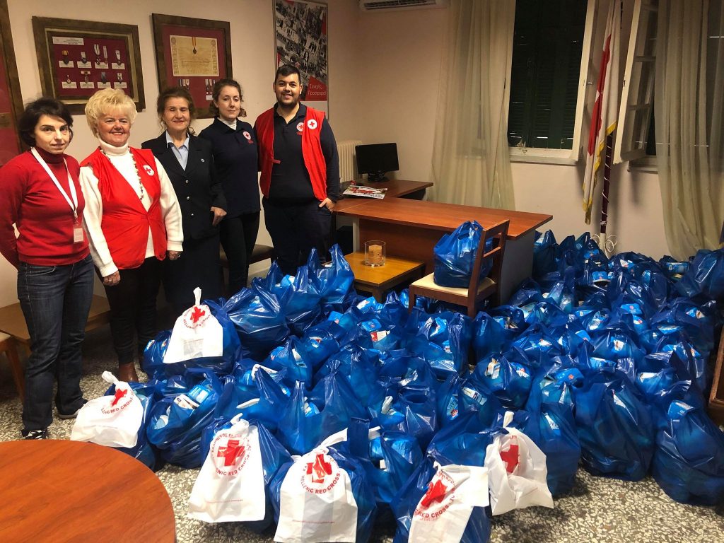 Για ακόμη μια χρονιά, το Τμήμα Τρικάλων του Ελληνικού Ερυθρού Σταυρού, θέλοντας να συμβάλει έστω και λίγο, να γεμίσουν οι ψυχές των ανθρώπων με χαρά κι ελπίδα, διένειμε τρόφιμα σε ευάλωτες κοινωνικές ομάδες(ανέργους, πολύτεκνους, Α.Μ.Ε.Α, μοναχικούς ηλικιωμένους, μονογονεϊκές οικογένειες, χρόνια πάσχοντες, κ.α.) που εξυπηρετούνται καθ΄όλη τη διάρκεια της χρονιάς από την Κοινωνική Υπηρεσία του Τμήματος, καθώς και από το πρόγραμμα «Γεροντολογία», της Νοσηλευτικής Υπηρεσίας.
