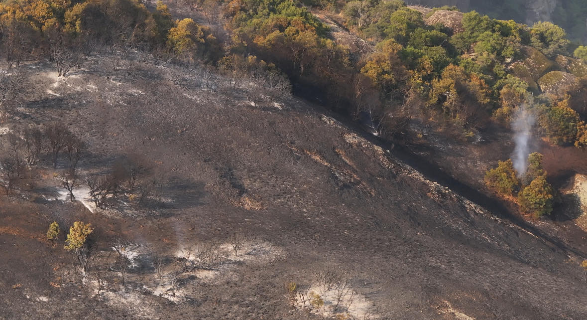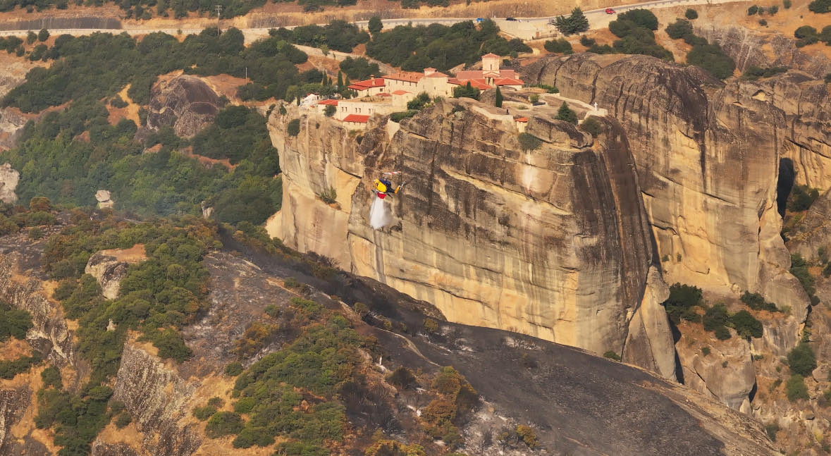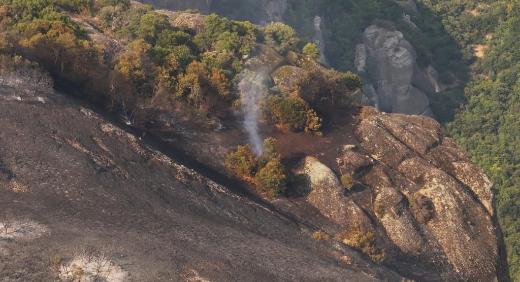 Κατασβήστηκε, με εναέριες ρίψεις νερού από ελικόπτερο η φωτιά που εκδηλώθηκε το μεσημέρι της Πέμπτης στα Μετέωρα.