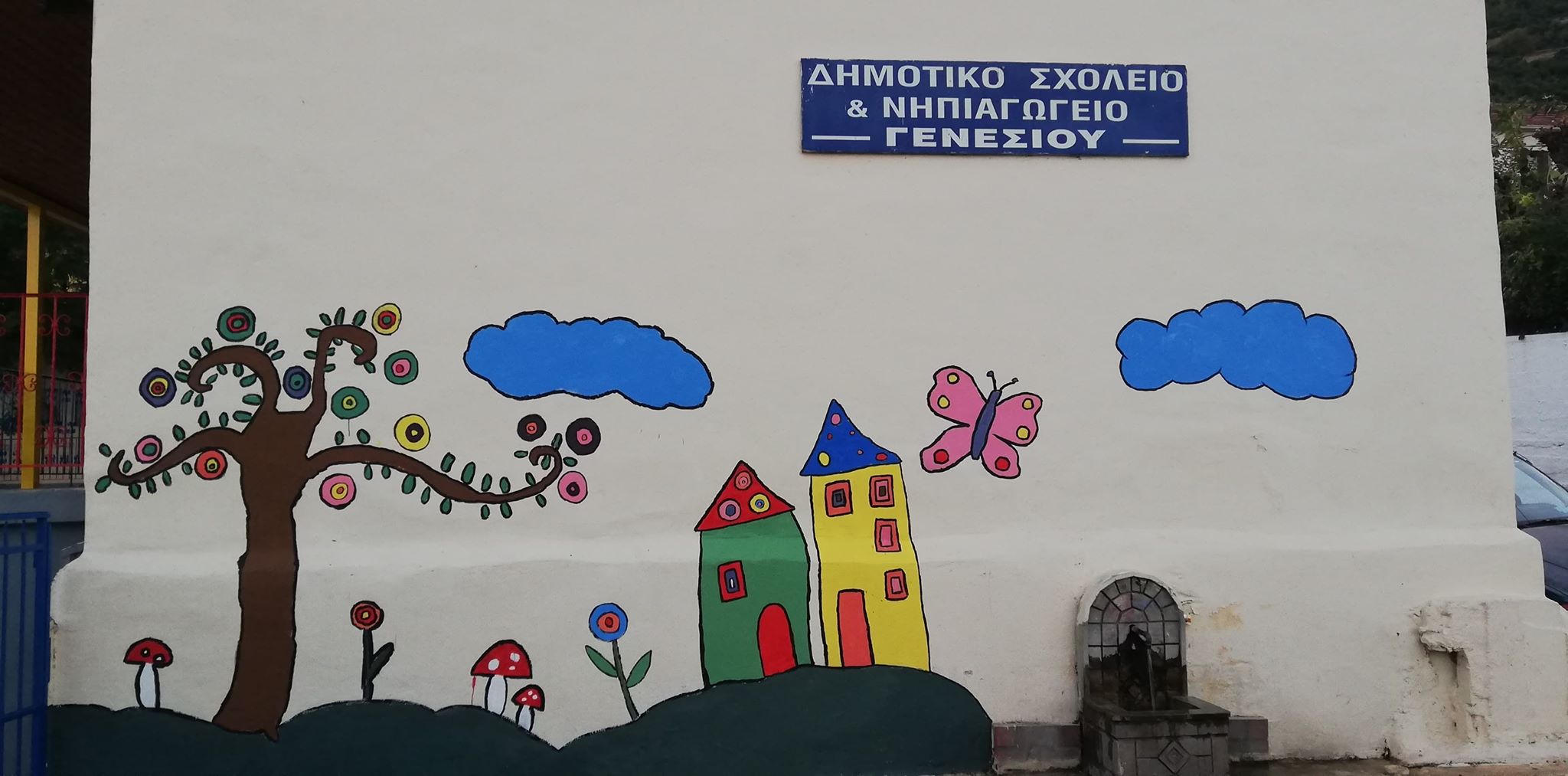 Με αγάπη για τα παιδιά και πολύ μεράκι για ανάδειξη του χωριού τους ο πρόεδρος της Κοινότητας Γενεσίου Γιώργος Γεωργούλας και ο Θοδωρής Καραϊσκος μεταμόρφωσαν κυριολεκτικά το κτίριο που στεγάζεται το Δημοτικό Σχολείο και το Νηπιαγωγείο Γενεσίου.