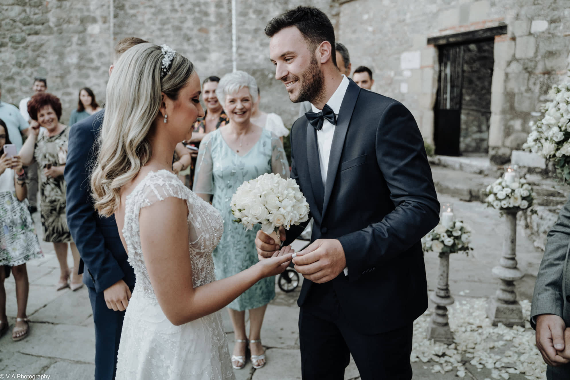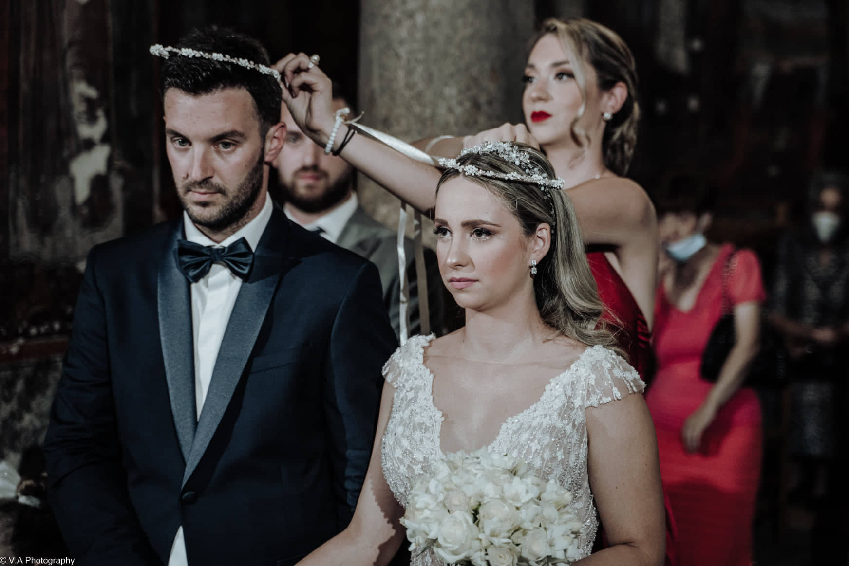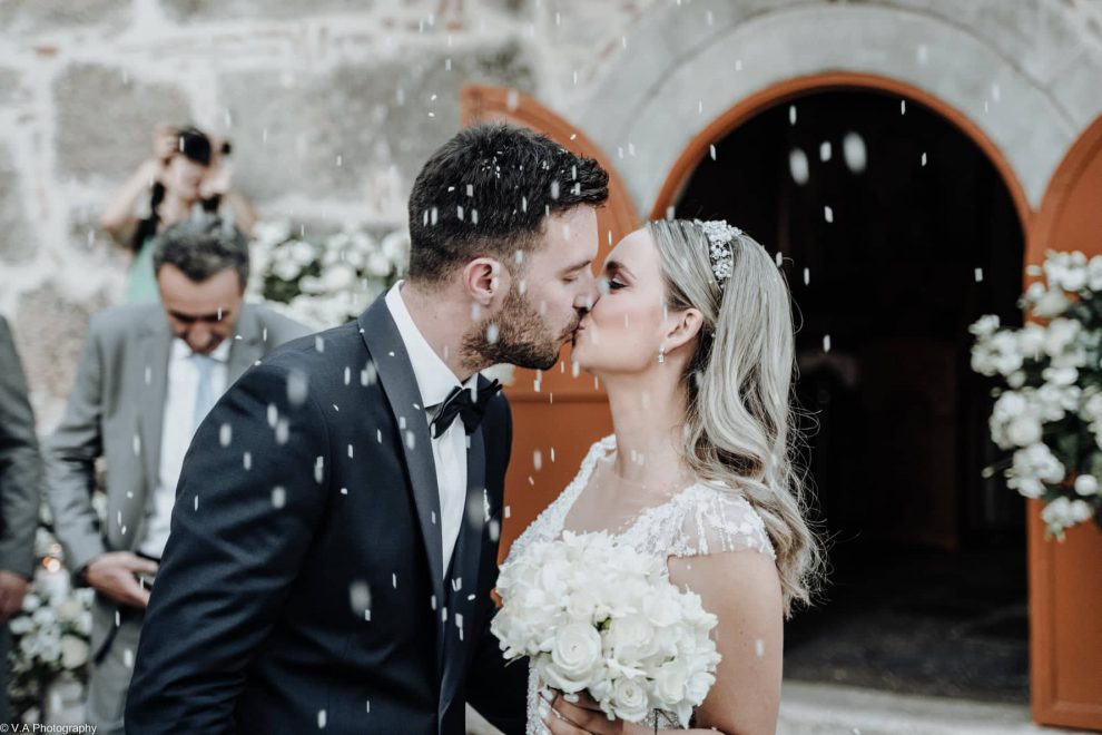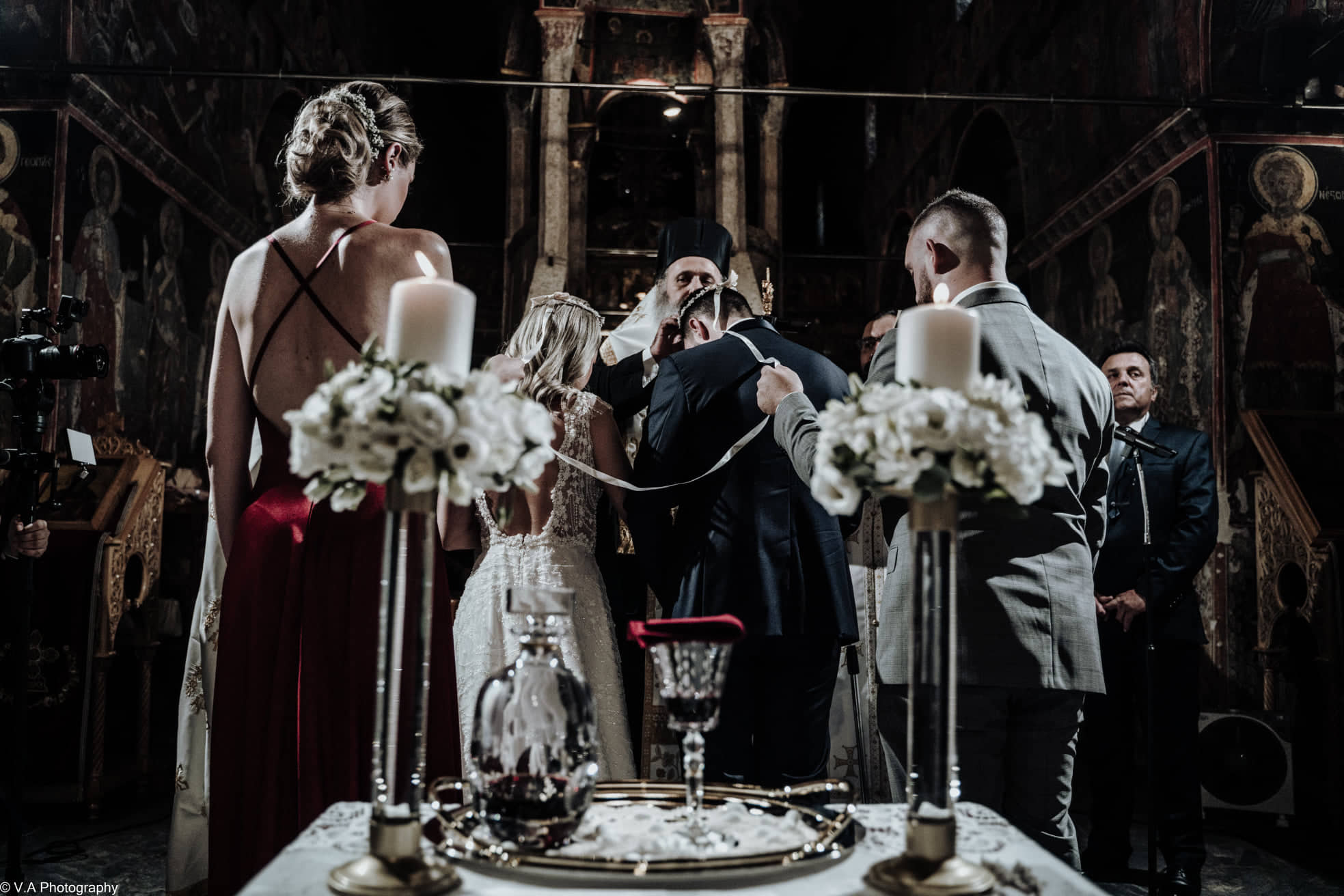Τα δυο παιδιά επέλεξαν να δώσουν όρκους αιώνιας πίστης και αφοσίωσης στον Βυζαντινό Ναό Κοιμήσεως Θεοτόκου Καλαμπάκας, στη σκιά των Μετεώρων. Το Μυστήριο τέλεσε ο Μητροπολίτης Σταγών και Μετεώρων Θεόκλητος, ενώ κουμπάροι του ζευγαριού ήταν οι Θέμης Γιάννης και Κωνσταντίνα Μάγκα.