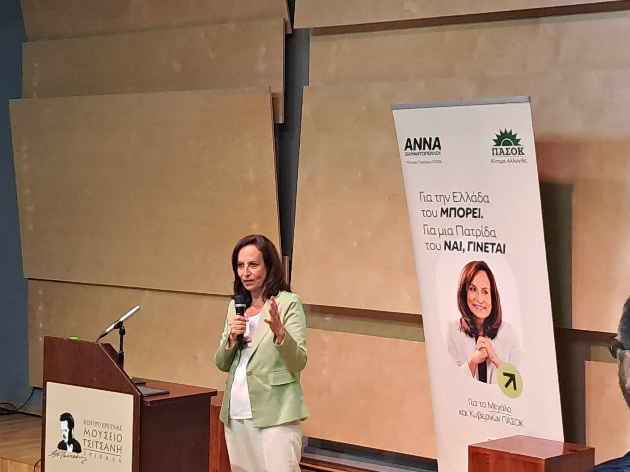 Το όραμα της για το πως μεγαλώνοντας το ΠΑΣΟΚ, μπορεί να δυναμώσει η Ελλάδα και η Κοινωνία, ξεδίπλωσε η υποψήφια για την Προεδρία του Κινήματος Άννα Διαμαντοπούλου, μιλώντας σε ένα θερμό και πολυπληθές ακροατήριο, στα Τρίκαλα.