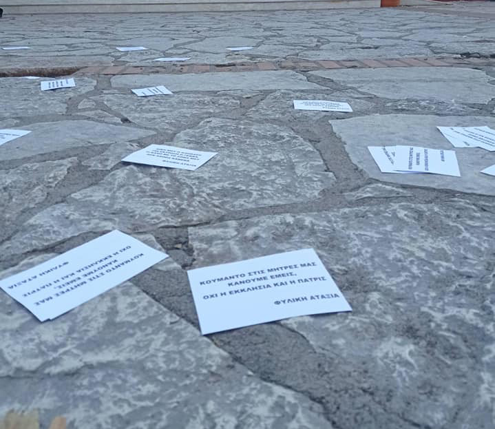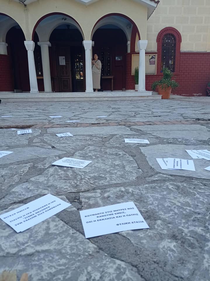 Η “Φυλική Αταξία” Τρικάλων προχώρησε σε εκδήλωση διαμαρτυρίας μπροστά στον Ι.Ν. Αγίου Κωνσταντίνου με αφορμή τις απαράδεκτες δηλώσεις του Μητροπολίτου Δωδώνης Χρυσοστόμου για τις αμβλώσεις, δηλώσεις που καταδικάστηκαν από την ίδια την Ιερά Σύνοδο.