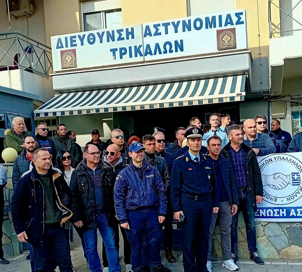 Συγκέντρωση διαμαρτυρίας στην έδρα της Αστυνομικής Διεύθυνσης Τρικάλων πραγματοποίησαν το μεσημέρι της Δευτέρας οι αστυνομικοί που υπηρετούν σε αυτή.