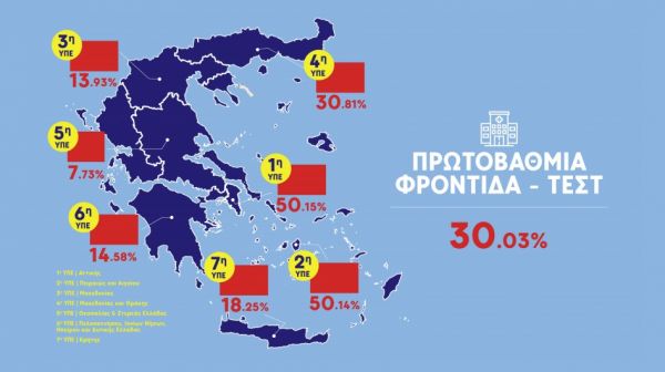 Όσον αφορά τα τεστ που έγιναν στα 39 Κέντρα Υγείας της βρίσκεται στην τελευταία θέση με ποσοστό μόλις 7,73% έναντι… 30,03% που είναι ο μέσος όρος πανελλαδικά.