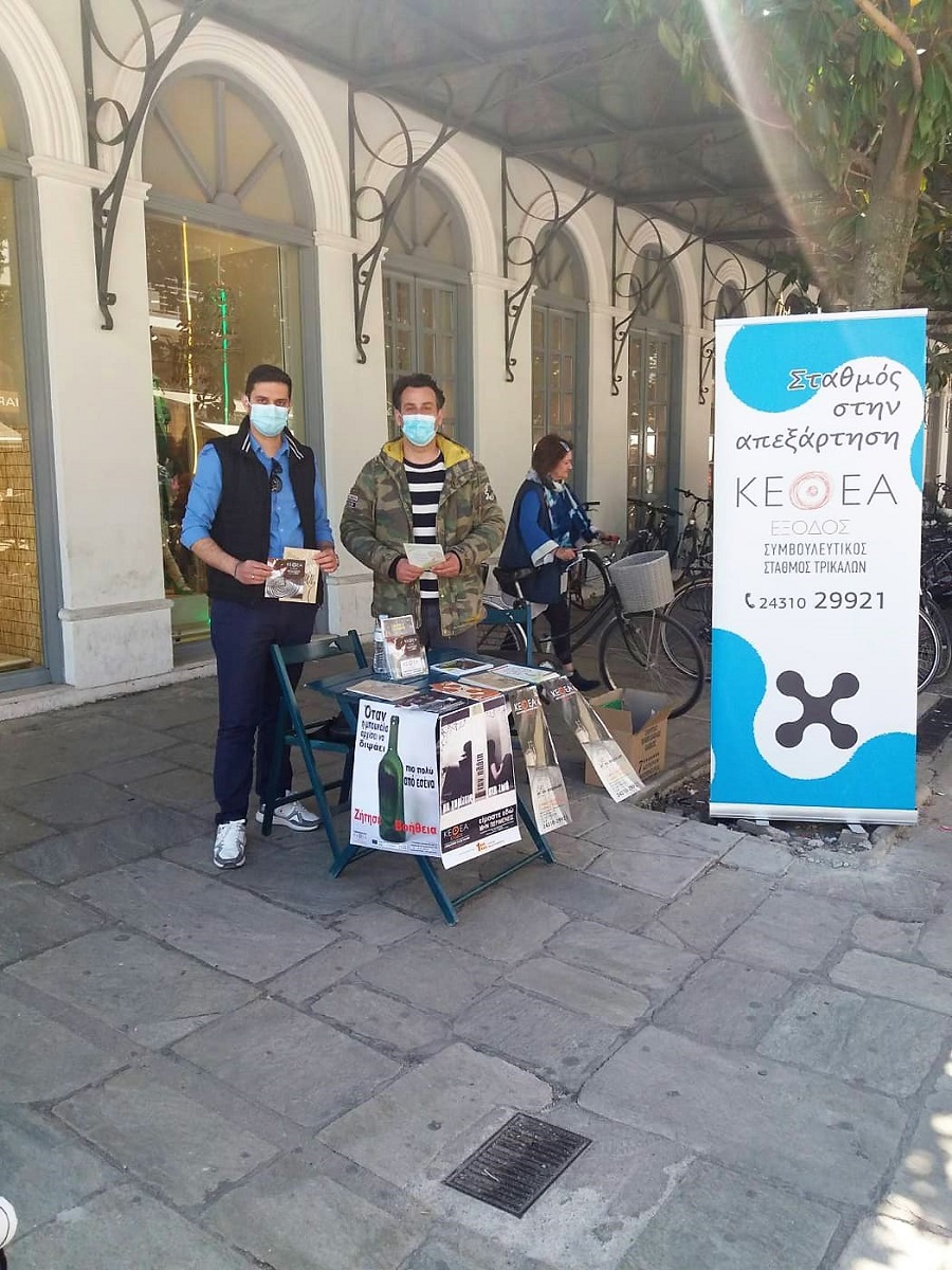 Την Παρασκευή 15 Απριλίου πραγματοποιήθηκε ενημερωτική δράση του Συμβουλευτικού Κέντρου Τρικάλων του ΚΕΘΕΑ ΕΞΟΔΟΣ στον πεζόδρομο της οδού Ασκληπιού, στο κέντρο της πόλης.