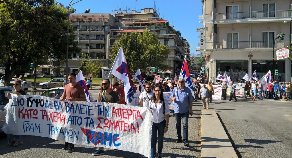 Με δυναμική και αγωνιστικó παλμό πραγματοποιήθηκε η απεργιακή κινητοποίηση που οργάνωσαν τα ταξικά σωματεία στα Τρίκαλα. Ήταν ακόμη μια απάντηση στα αντεργατικά σχέδια της κυβέρνησης, ενάντια στο αντεργατικό «αναπτυξιακό» πολυνομοσχέδιο της κυβέρνησης που δίνει γη και ύδωρ στους “επενδυτές”, διασφαλίζοντας ακόμα μεγαλύτερα κέρδη για τις επιχειρήσεις τους, τσακίζοντας όσα εργατικά και συνδικαλιστικά δικαιώματα έχουν απομείνει βάζοντας στο γύψο τα Σωματεία, τη συλλογική οργάνωση και διεκδίκηση των εργαζομένων.