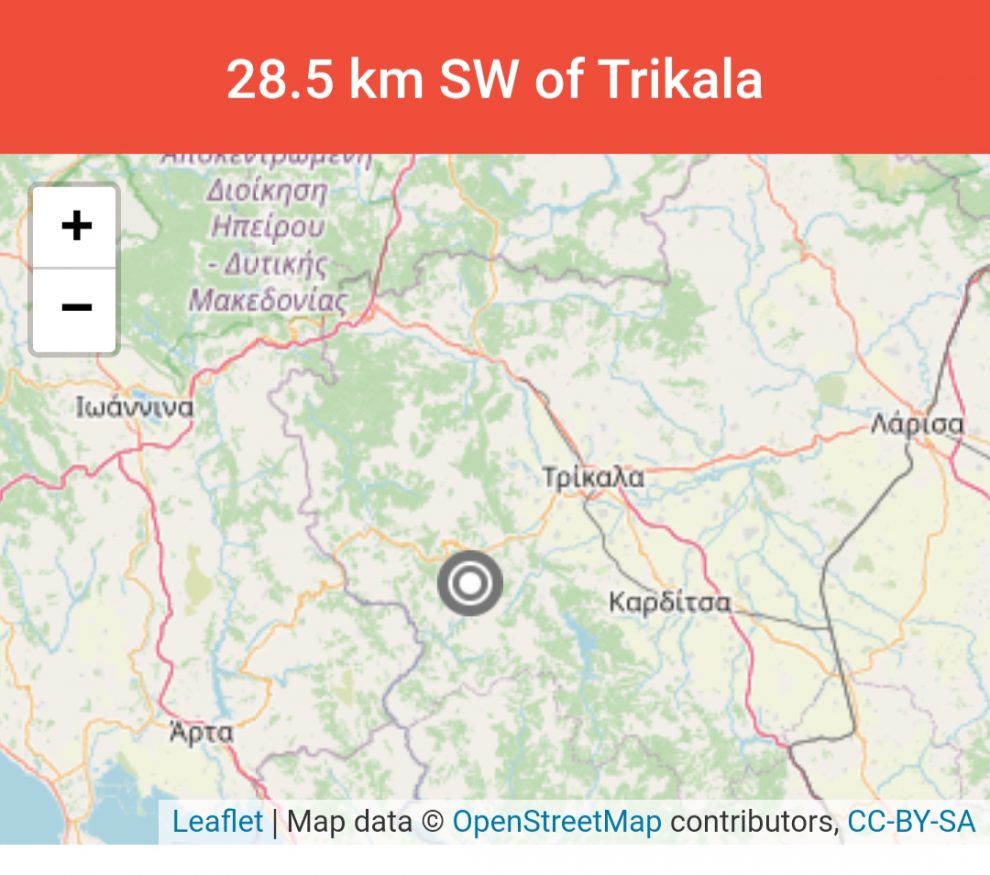 Σημειώνεται ότι τα μεσάνυχτα της Τρίτης με επίκεντρο στην ίδια περιοχή εκδηλώθηκε σεισμός μεγέθους 3,3 βαθμών της Κλίμακας Ρίχτερ και έγινε ιδιαίτερα αισθητός και στην πόλη των Τρικάλων.