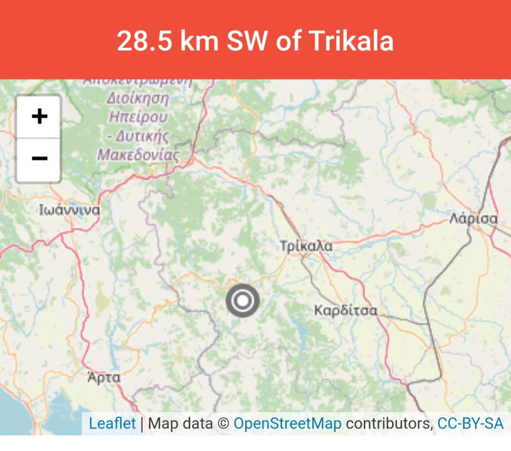 Σημειώνεται ότι τα μεσάνυχτα της Τρίτης με επίκεντρο στην ίδια περιοχή εκδηλώθηκε σεισμός μεγέθους 3,3 βαθμών της Κλίμακας Ρίχτερ και έγινε ιδιαίτερα αισθητός και στην πόλη των Τρικάλων.