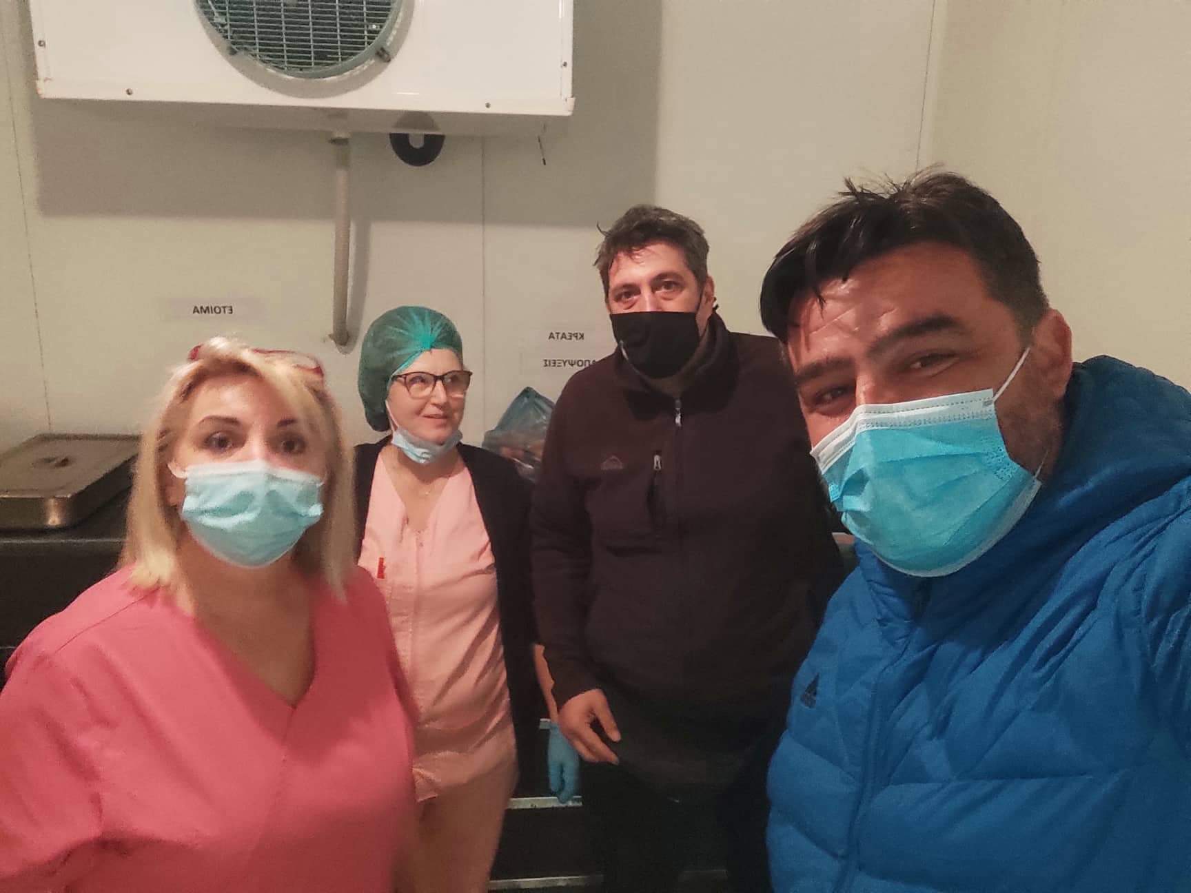 Οι Νίκος Παπακώστας και Μπάμπης Μοσχόφογλου παρέδωσαν το πρωί του Σαββάτου μεγάλη ποσότητα μανταρίνια σε γιατρούς και νοσηλευτές.