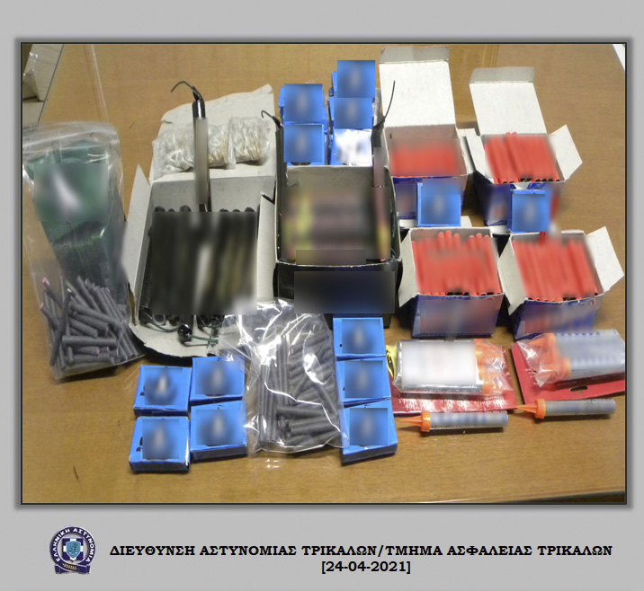Συνελήφθησαν, χθες (23-04-2021) το απόγευμα, σε δύο διαφορετικές περιπτώσεις, από αστυνομικούς του Τμήματος Ασφάλειας Τρικάλων, δύο ημεδαποί, κατηγορούμενοι για παράβαση της νομοθεσίας περί βεγγαλικών, φωτοβολίδων, πυροτεχνημάτων και παιδικών αθυρμάτων.