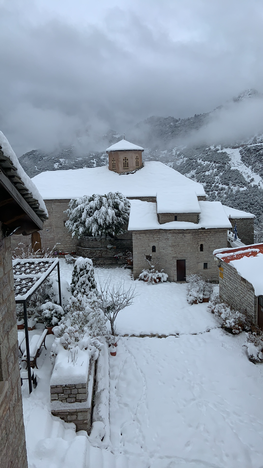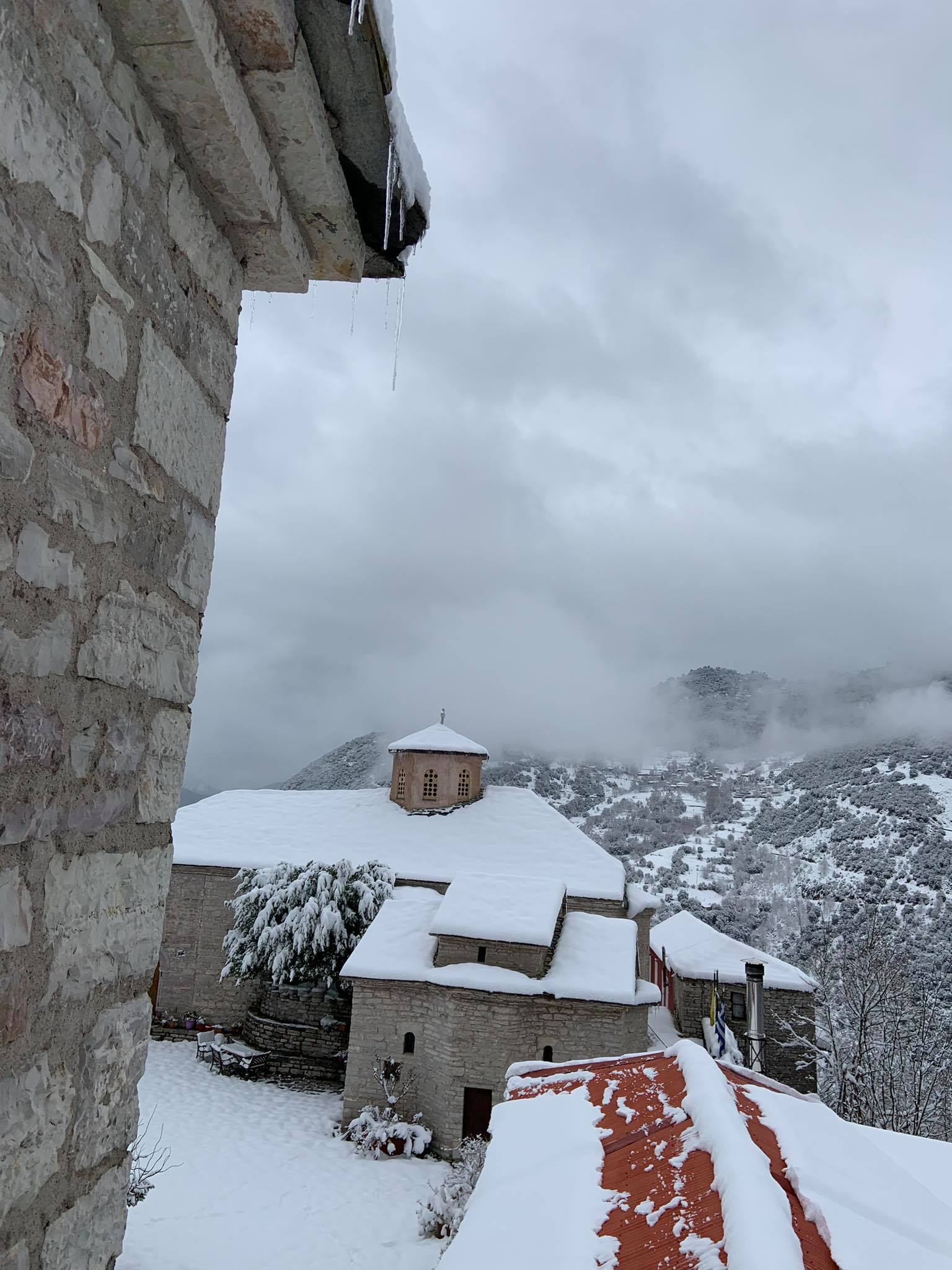 Εικόνες απαράμιλλης ομορφιάς από τη χιονισμένη και σταθερά όμορφη Ιερά Μονή Παναγίας Σπηλιάς Αγράφων.