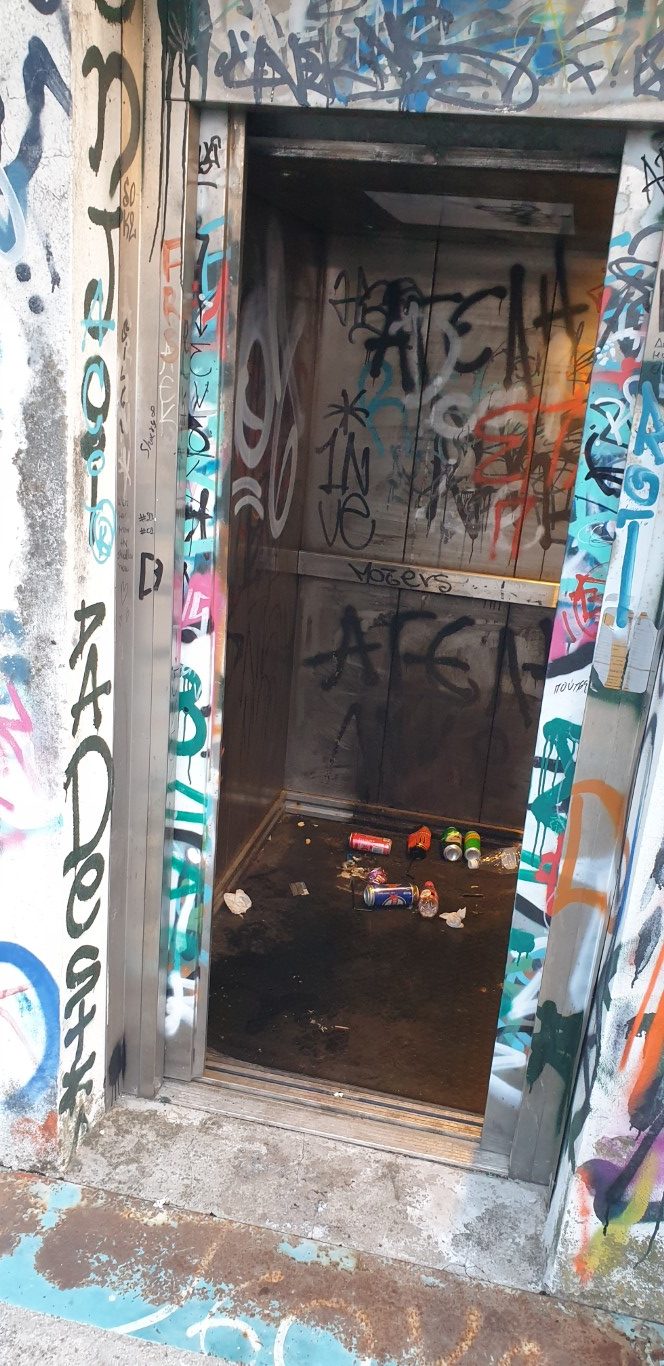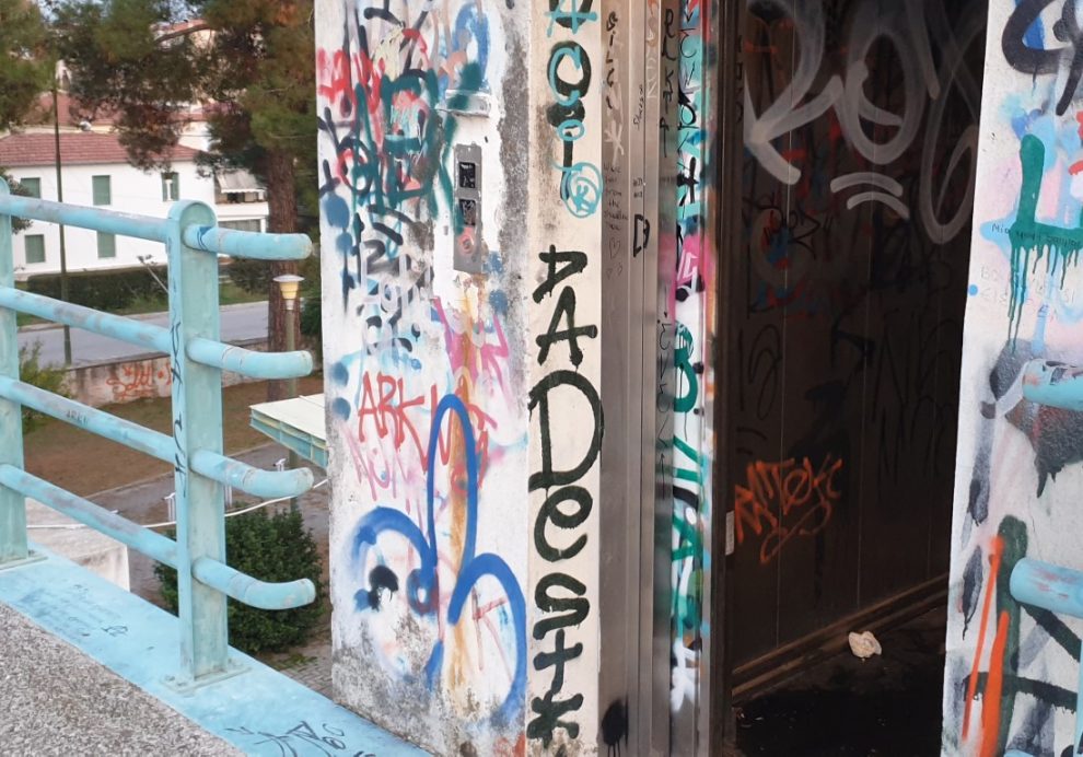 Όπως καταγράφει το trikalavoice.gr η αερογέφυρα που είχε κατασκευαστεί για να εξυπηρετούνται ένθεν κακείθεν της γραμμής οι επιβάτες και για να μπορούν να μετακινούνται στην πλατφόρμα αναχώρησής τους (σ.σ. άσχετα αν χρησιμοποιείται πια… μόνο μια!) παραμένει παροπλισμένη. Έτσι δεν χρησιμοποιούνται και τα ασανσέρ που είχαν κατασκευαστεί. Ή καλύτερα δεν χρησιμοποιούνται για το σκοπό που κατασκευάστηκαν. Καταστράφηκαν και πλέον χρησιμοποιούνται ως…. αποχωρητήρια ή ως καταφύγιο παράνομων πράξεων. Οι εικόνες είναι απαράδεκτες και παραμένουν εστίες μόλυνσης για τους πιτσιρικάδες κυρίως που διέρχονται πια από ‘κει.