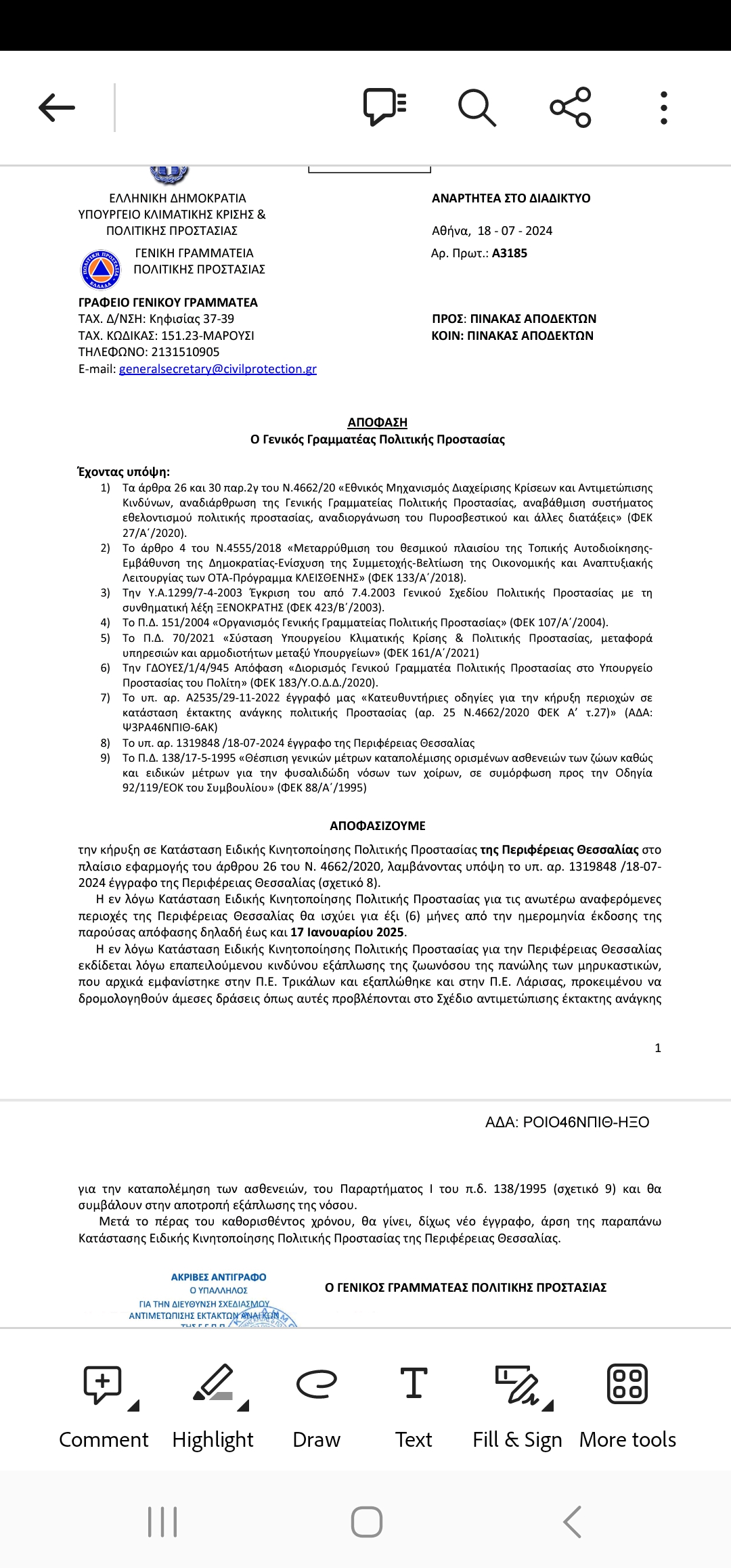 Γνωρίζοντας και από την επιστημονική του ιδιότητα τους κινδύνους εξάπλωσης στοιχειοθέτησε το αίτημα με τέτοιο τρόπο ώστε έγινε άμεσα δεκτό. Έτσι η Θεσσαλία μπαίνει σε καθεστώς εκτάκτου ανάγκης μέχρι τις 27 Γενάρη του 2025. Πρακτικά αυτό σημαίνει ότι θα περιοριστούν οι κίνδυνοι εξάπλωσης της πανώλης, αφετέρου δε εξασφαλίζονται αποζημιώσεις για τους παραγωγούς.