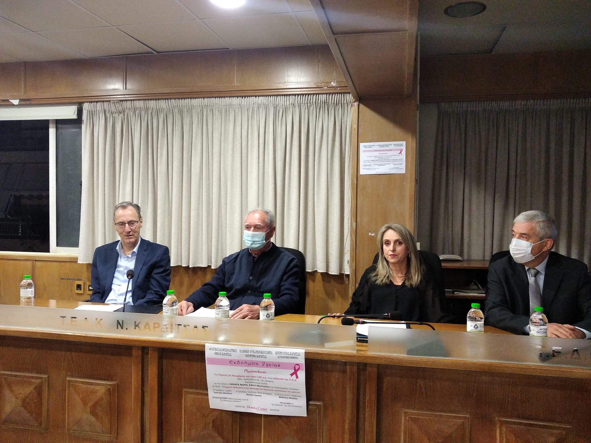 Η εξαίρετη και με ιδιαίτερα πλούσιο επιστημονικό βιογραφικό ιατρός, ανταποκρίθηκε στην πρόσκληση των φορέων: Αθλητικού και Φυσιολατρικού Ομίλου, Κέντρου Υγείας Καρδίτσας και Ελληνικής Αντικαρκινικής Εταιρείας – Παράρτημα Καρδίτσας, που συνεργάστηκαν άψογα και αποτελεσματικά, στα πλαίσια σχεδιασμού ενημερωτικών δράσεων με προτεραιότητα στην πρόληψη νοσημάτων υγείας.