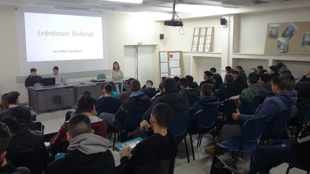 Με αφορμή την καθιέρωση από το Υπουργείο Παιδείας της 6ης Μαρτίου ως Πανελλήνιας Ημέρας κατά της Σχολικής Βίας και του Εκφοβισμού, υλοποιήθηκε στο 1ο ΕΠΑΛ Τρικάλων μία σειρά δράσεων με την ενεργή συμμετοχή των μαθητών. Έχοντας ως στόχο την ενημέρωση και ευαισθητοποίηση της σχολικής κοινότητας για την πρόληψη και αντιμετώπιση του φαινομένου, οι μαθητές ετοίμασαν μία παρουσίαση σχετική με τους βασικούς άξονες του φαινομένου, συμμετείχαν σε εικαστικά εργαστήρια, δημιούργησαν βίντεο και φιλοτέχνησαν αφίσες. Οι δράσεις αυτές, με κεντρικό μήνυμα «Δεν εκφοβίζω, φέρομαι ευγενικά, ζω ευτυχισμένα», παρουσιάστηκαν σε μία εκδήλωση στο αμφιθέατρο του σχολείου στις 8 Μαρτίου.