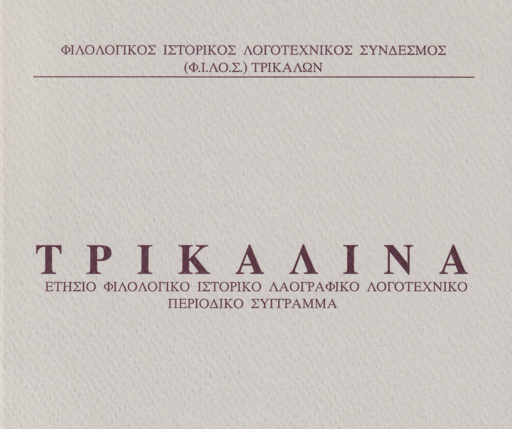 Κυκλοφόρησε ο 40ός τόμος (2020) του ετησίου περιοδικού επιστημονικού συγγράμματος «Τρικαλινά», το οποίο εκδίδει ανελλιπώς κάθε χρόνο από το 1981 ο Φιλολογικός, Ιστορικός, Λογοτεχνικός Σύνδεσμος (Φ.Ι.Λ.Ο.Σ.) Τρικάλων και διατίθεται από τα βιβλιοπωλεία. Ειδικότερα ο τόμος αυτός περιλαμβάνει: