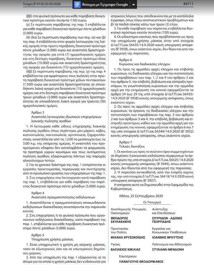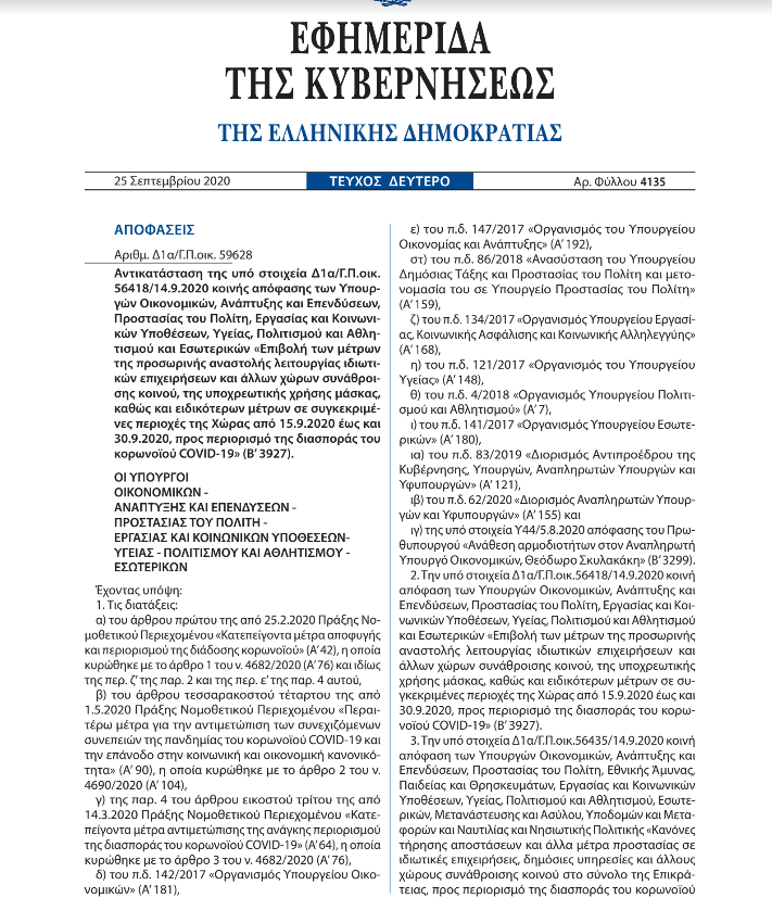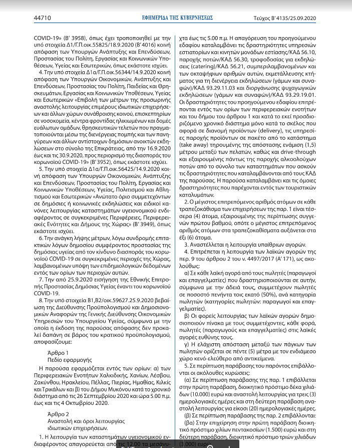 Εκδόθηκε αργά το βράδυ της Παρασκευής το ΦΕΚ με το οποίο προσδιορίζονται σαφώς τα νέα μέτρα στην Περιφερειακή Ενότητα Τρικάλων.