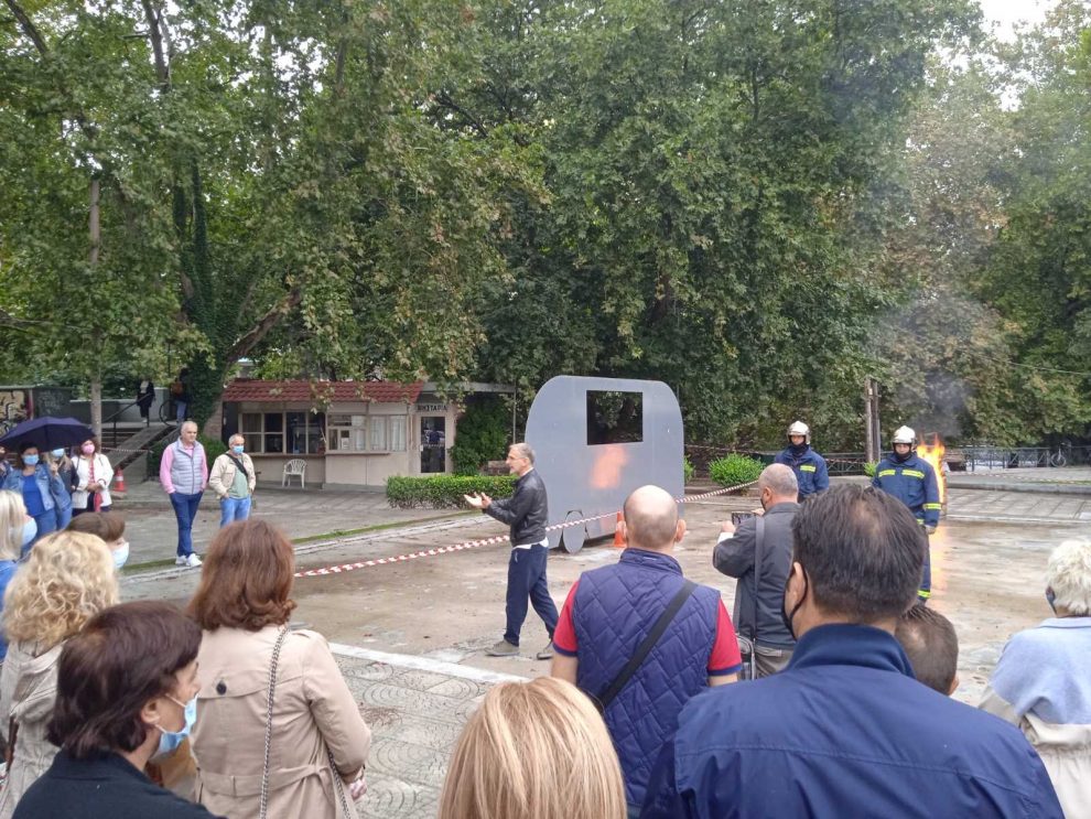 Εκεί αφού καταμετρήθηκαν από τους αρχηγούς πυρασφάλειας, ακολούθησε μια σύντομη ενημέρωση από τον τεχνικό ασφαλείας και στη συνέχεια πραγματοποιήθηκε επίδειξη σε ειδικά διαμορφωμένο χώρο, χρήσης πυροσβεστικών μέσων από κλιμάκιο της Π.Υ. Η διεξαγωγή της άσκησης εντάσσεται στις συνεχείς προσπάθειες βελτίωσης των επιπέδων ετοιμότητας των εργαζομένων στην Περιφερειακή Ενότητα Τρικάλων αλλά και όλων των εμπλεκομένων φορέων. Την άσκηση εκκένωσης επόπτευσαν εκτός από τον Διοικητή της Π.Υ. Τρικάλων και ο Τεχνικός Ασφαλείας κ. Γιάννης Τζίκας.