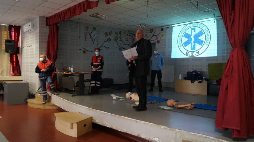 Διεύθυνση Πρωτοβάθμιας Εκπαίδευσης Τρικάλων σε συνεργασία με το ΕΚΑΒ Θεσσαλίας, διοργάνωσε την Τρίτη 15 Μαρτίου 2022 στο αμφιθέατρο του 10ου Δημοτικού Σχολείου Τρικάλων, το εξαιρετικά χρήσιμο σεμινάριο καρδιοπνευμονικής αναζωογόνησης με τη χρήση αυτόματου εξωτερικού απινιδωτή (ΑΕΑ) προκειμένου να εκπαιδευθούν οι Διευθυντές,-ντριες των Δημοτικών σχολείων στην παροχή Πρώτων Βοηθειών.