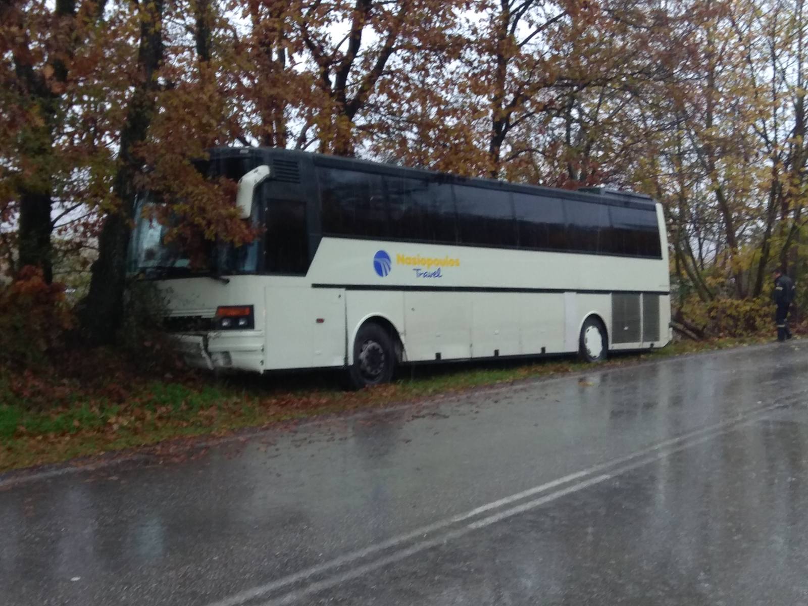 Συγκρούστηκε με Ι.Χ. επιβατικό και εξετράπη της πορείας του. Οι μαθητές βγήκαν σώοι και λίγη ώρα αργότερα μεταβιβάστηκαν σε άλλο λεωφορείο.