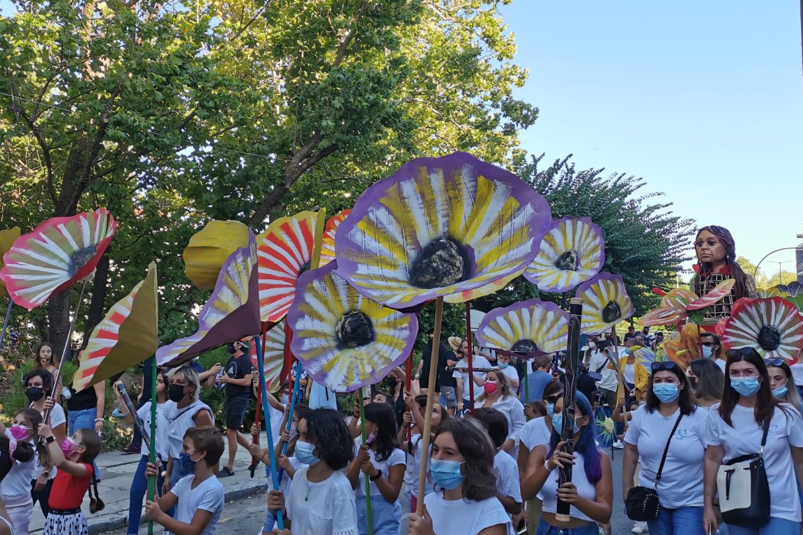 Στο Μουσείο Τσιτσάνη, κουρασμένη η μικρή Αμάλ, αντικρίζει ένα «δάσος» από 150 λουλούδια που κατασκεύασαν μαθητές και μαθήτριες σχολείων.