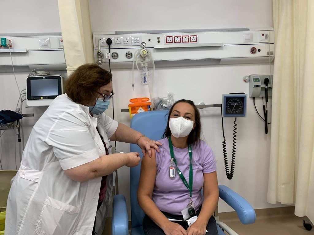 Η Φανή Νακοπούλου, πρώην ακτινολόγος στο Νοσοκομείο Τρικάλων, εμβολιάστηκε για τον covid-19 στο Ygia Policlinic της Κύπρου όπου προσφέρει τις υπηρεσίες της τους τελευταίες μήνες.