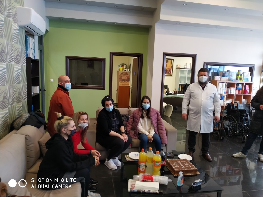 Στην συνέχεια κόπηκε η καθιερωμένη βασιλόπιτα από τον Επιστημονικό Διευθυντή Φυσίατρο κ. Σύρο Απόστολο και τον Διοικητικό Διευθυντή κ. Τεντολούρη Ευθύμιο, οι οποίοι ευχήθηκαν σε όλο το προσωπικό για το 2021 Υγεία, Ευτυχία και Δύναμη και να είναι το 2021 έτος δημιουργίας και ευχάριστων ειδήσεων.