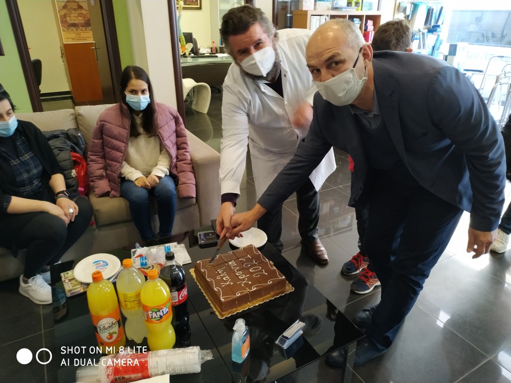 Στην συνέχεια κόπηκε η καθιερωμένη βασιλόπιτα από τον Επιστημονικό Διευθυντή Φυσίατρο κ. Σύρο Απόστολο και τον Διοικητικό Διευθυντή κ. Τεντολούρη Ευθύμιο, οι οποίοι ευχήθηκαν σε όλο το προσωπικό για το 2021 Υγεία, Ευτυχία και Δύναμη και να είναι το 2021 έτος δημιουργίας και ευχάριστων ειδήσεων.