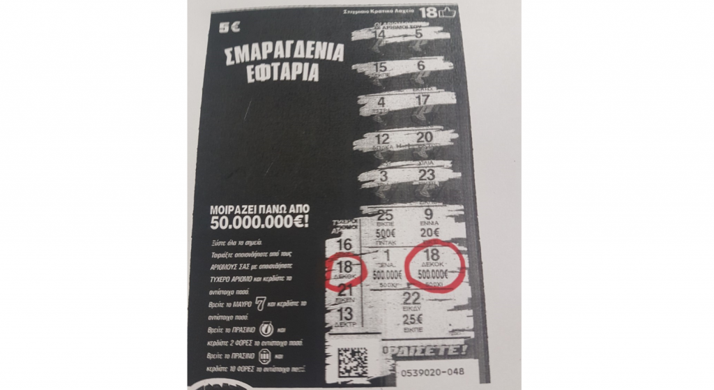 Στο πρακτορείο ΟΠΑΠ MARACANA, Γαμβέτα και Γλάδστωνος γωνία, παίχτηκε το τυχερό ΣΚΡΑΤΣ.