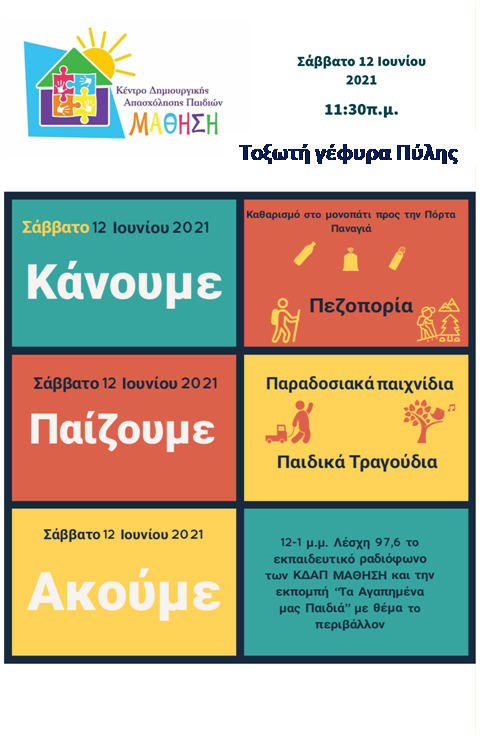 –Ακούμε 12-1μμ Λέσχη 97,6 το εκπαιδευτικό ραδιόφωνο των ΚΔΑΠ ΜΑΘΗΣΗ και την εκπομπή –Τα αγαπημένα μας παιδιά- με θέμα το περιβάλλον.