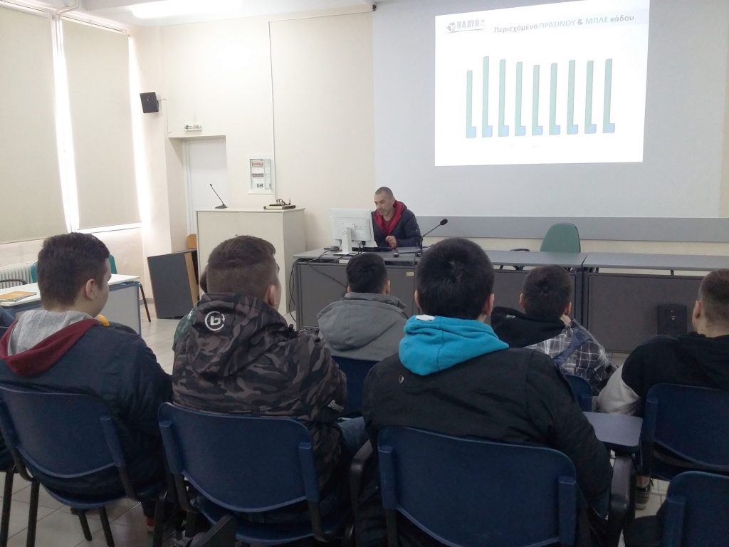 Στο πλαίσιο του προγράμματος με τίτλο «Η ανακύκλωση υλικών στην πόλη μας και η συμβολή της στον μετριασμό της κλιματικής αλλαγής» που υλοποιεί το 1ο ΕΠΑΛ Τρικάλων κατά την τρέχουσα σχολική χρονιά, οι μαθητές του τμήματος Β1 του τομέα Πληροφορικής που συμμετέχουν στο πρόγραμμα, ενημερώθηκαν από τον υπεύθυνο της ΠΑΔΥΘ Α.Ε. – Εταιρείας Διαχείρισης των Στερεών Αποβλήτων Δυτικής Θεσσαλίας κ. Παγανό Ελευθέριο σε ημερίδα που έγινε στο σχολείο στις 5/2/2020 σχετικά με: