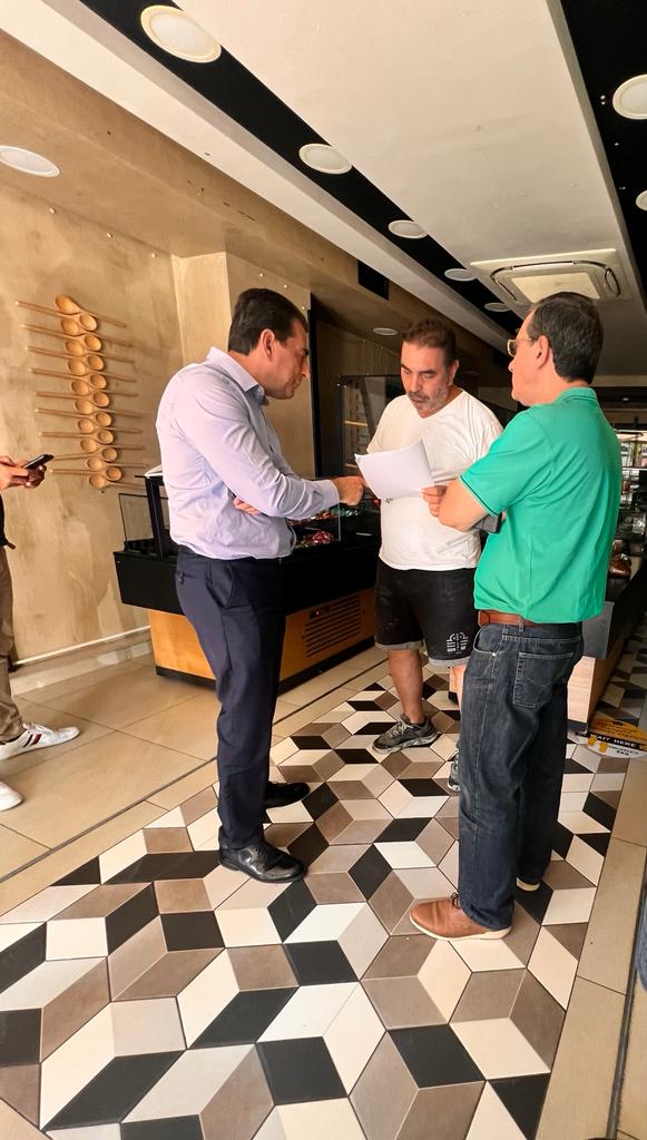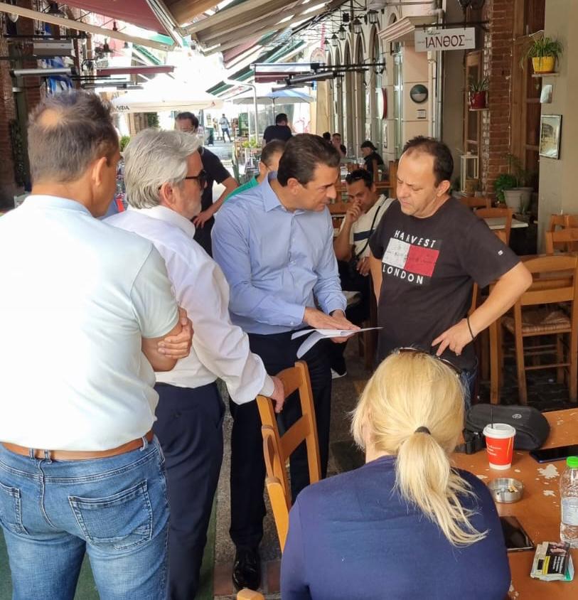 Ενημερωτικές επισκέψεις στους επαγγελματίες των Τρικάλων για τον οδικό χάρτη καταγραφής των ζημιών και αποζημίωσης των πληγέντων από τη θεομηνία, πραγματοποίησε σήμερα, Κυριακή 10 Σεπτεμβρίου, ο Υπουργός Ανάπτυξης, Κώστας Σκρέκας, μαζί τον Πρόεδρο του Επιμελητηρίου Τρικάλων, κ. Βασίλη Γιαγιάκο, τον Πρόεδρο της Ομοσπονδίας ΕΒΕ Τρικάλων, κ. Ευάγγελο Αγγελάκη και εκπροσώπους της τοπικής επιχειρηματικής κοινότητας.
