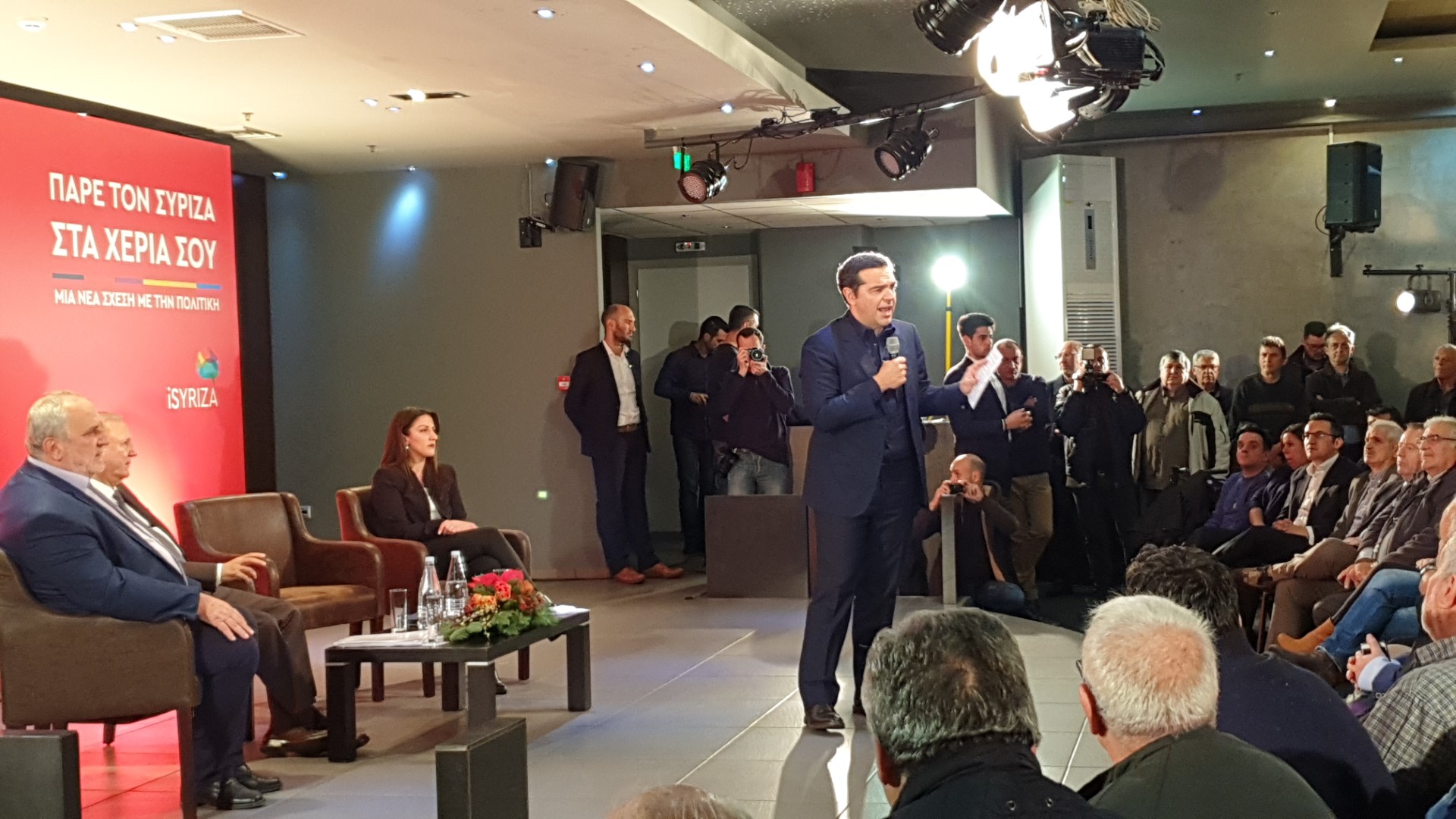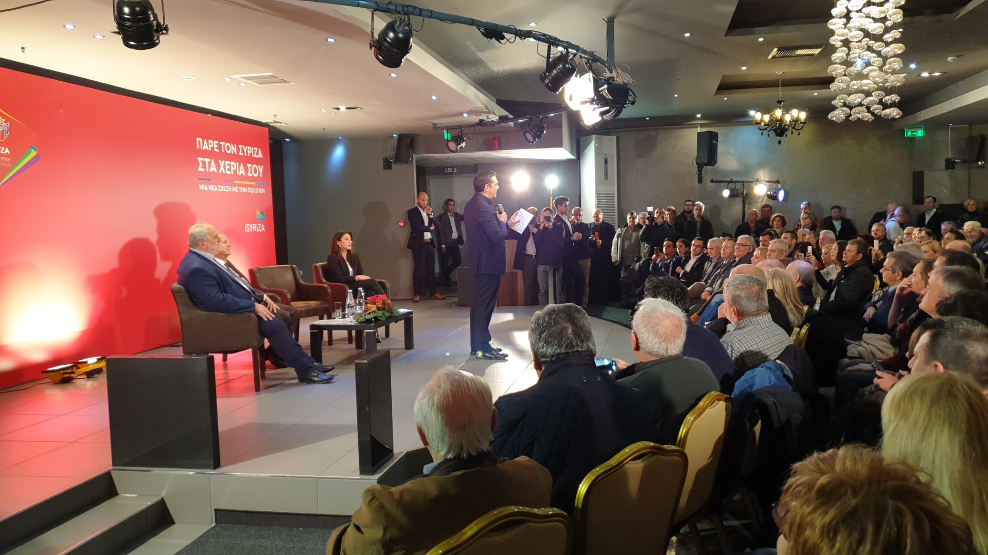 Όπως κατέγραψε το trikalavoice.gr ο Αλέξης Τσίπρας μίλησε άνοιξε τη συζήτηση για την διεύρυνση του κόμματος και την προοδευτική παράταξη στην κατάμεστη αίθουσα του Gallery Art Hotel, σε μια από τις μεγαλύτερες συγκεντρώσεις (αν όχι η μεγαλύτερη) που έχουν φιλοξενηθεί εκεί.