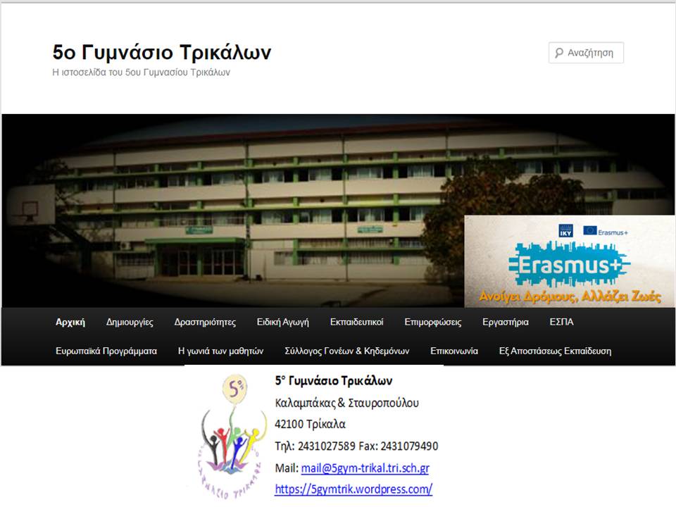 Παρακαλούνται Γονείς, Κηδεμόνες και Μαθητές/τριες του 5ου Γυμνασίου Τρικάλων να επισκέπτονται καθημερινά τη σελίδα του σχολείου, https://5gymtrik.wordpress.com/ , προκειμένου να ενημερώνονται για τα τρέχοντα θέματα της Εξ Αποστάσεως Εκπαίδευσης που λειτουργούν στο σχολείο. Επίσης να ελέγχουν τακτικά τα mails επειδή το σχολείο στέλνει οδηγίες και κατευθύνσεις πώς να χειριστούν τα εξ αποστάσεως μαθήματα που οργανώνει.