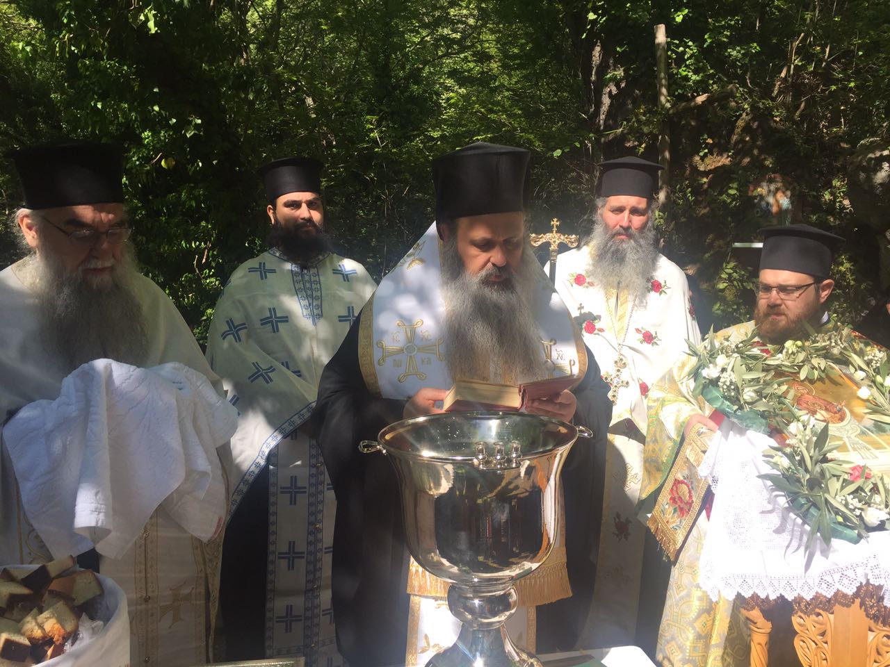 Πριν την απόλυση της Θείας Λειτουργίας ο σεπτός Ποιμενάρχης μας κ. Θεόκλητος μετέβη στο Αγιονέρι ( πηγή ) της Μονής όπου μετά από πολλά χρόνια τέλεσε τον αγιασμό και την αρτοκλασία .