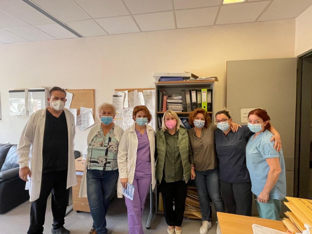 Κατά τη χθεσινή επίσκεψη της στο Νοσοκομείο Τρικάλων, συνοδευόταν από Νοσοκομειακούς Ιατρούς, που κατεβαίνουν στις εκλογές με το συνδυασμό της. Ενημερώθηκε από το Διοικητή κ. Κωνσταντίνο Γρηγορίου για τα προβλήματα του Νοσηλευτικού Ιδρύματος.