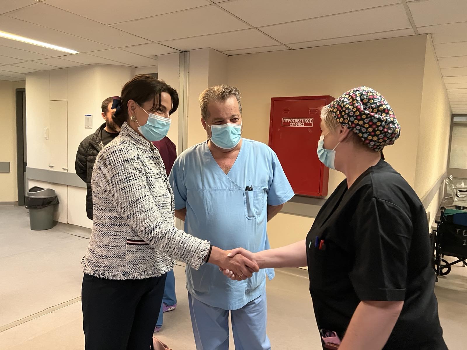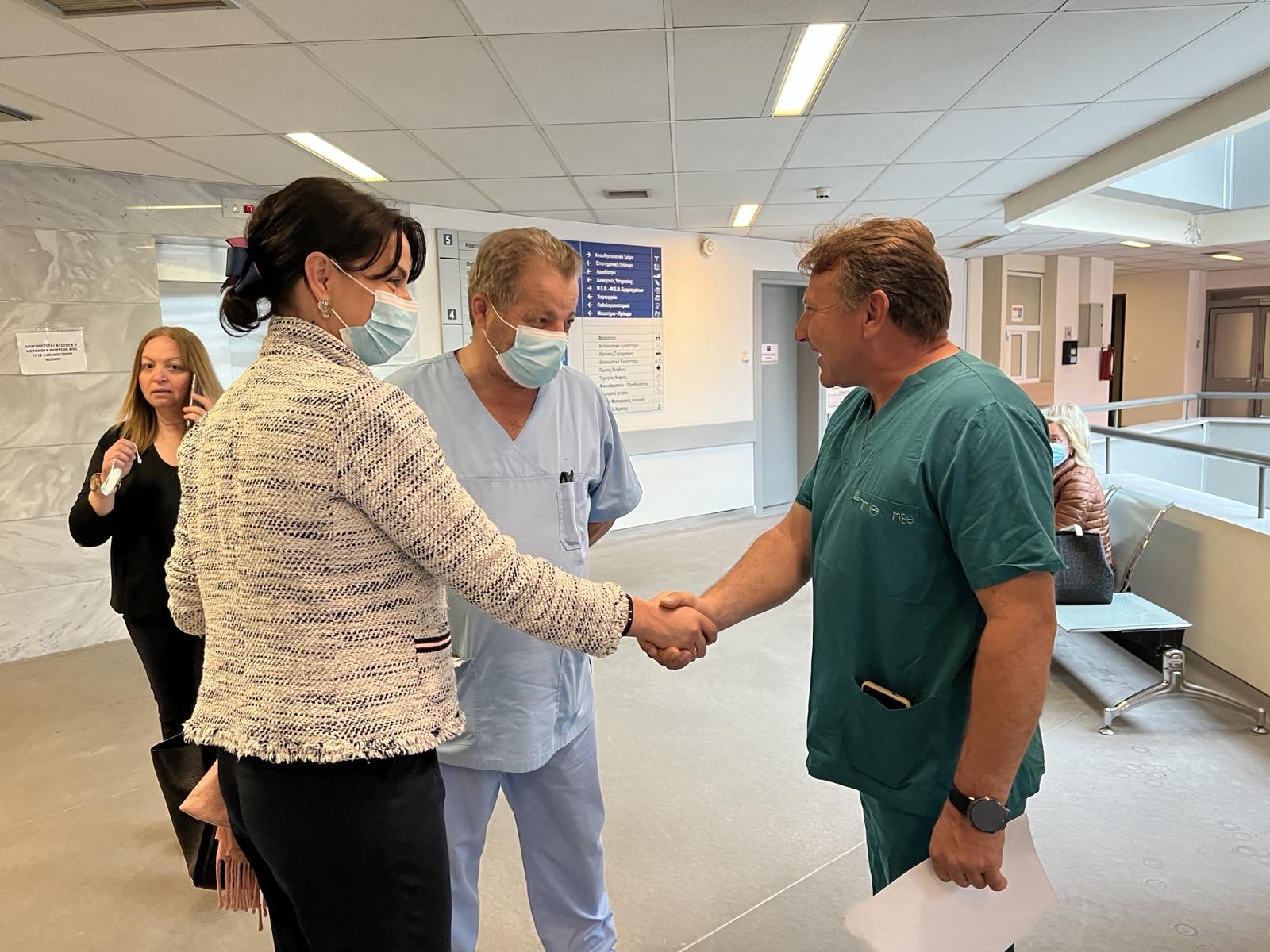 Ενημερώθηκε για τις ελλείψεις σε ιατρικό και νοσηλευτικό προσωπικό, την ανάγκη άμεσων προσλήψεων, για να ενισχυθεί η δημόσια υγεία, χωρίς ιδιώτες – εργολάβους, τη μονιμοποίηση των συμβασιούχων, την άδικη απόλυση εργαζομένων και την επιστροφή τους στον χώρο, καθώς και για την δίκαιη ένταξη στο ανθυγιεινό επίδομα. Η επίσκεψή της σε όλα τα τμήματα, η άμεση επαφή με τους εργαζομένους αλλά και τους λήπτες υγείας έκαναν ακόμη πιο σαφές το μήνυμα για αγώνα  και Δικαιοσύνη παντού.