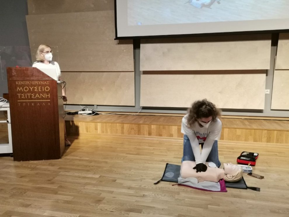 Η κ. Χριστίνα Καρατζαφέρη, αν. καθηγήτρια στο ΤΕΦΑΑ του Πανεπιστημίου Θεσσαλίας, αναφέρθηκε στις συστηματικές προσπάθειες που γίνονται στα Τρίκαλα, ο κ. Γ. Λάτσιος, παρεμβατικός καρδιολόγος, εστίασε μέσω δικτυακής σύνδεσης στην ουσία της συγκεκριμένης εκδήλωσης, ο τ. καθηγητής του ΤΕΦΑΑ κ. Δημ. Σιούλας ως εκπρόσωπος του Γυμναστικού Συλλόγου Τρικάλων τόνισε την ουσία για τη χρήση απινιδωτή στους αθλητικούς χώρους και η αναισθησιολόγος, διευθύντρια ΕΣΥ ΓΝ Τρικάλων και διδάσκουσα στο ΤΕΦΑΑ κ. Ελένη Πολύζου, έκανε λόγο για τα συγκεκριμένα ιατρικά δεδομένα που αφορούν στον απινιδωτή.