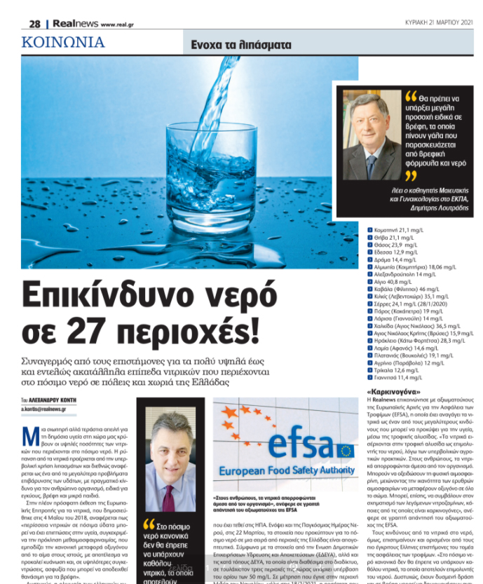 Όπως έγραψε η RealNews η ρύπανση από τα νιτρικά προέρχεται από την υπερβολική χρήση λιπασμάτων και διεθνώς αναφέρεται ως ένα από τα μεγαλύτερα προβλήματα επιβάρυνσης των υδάτων, με πραγματικό κίνδυνο για τον ανθρώπινο οργανισμό, ειδικά για εγκύους, βρέφη και μικρά παιδιά. Σύμφωνα με τα στοιχεία από την Ένωση Δημοτικών Επιχειρήσεων Ύδρευσης και Αποχετεύσεων (ΕΔΕΥΑ), αλλά και τις κατά τόπους ΔΕΥΑ, τα οποία είναι διαθέσιμα στο διαδίκτυο, σε τουλάχιστον τρεις περιοχές της χώρας υπάρχει υπέρβαση του ορίου των 50 mg/L. Σε μέτρηση που έγινε στην περιοχή Μιδέα του Ναυπλίου, στις 18/2/2021, η ποσότητα που βρέθηκε ήταν 137 mg/L, σχεδόν τριπλάσια της επιτρεπόμενης. Στην Ερμιόνη, σε μέτρηση του 2019, εντοπίστηκαν 65 mg/L, ενώ πρόβλημα υπάρχει και στο Άργος, καθώς τον Ιούνιο του 2020 στην περιοχή Κουτσοπόδι τα νιτρικά μετρήθηκαν στα 88 mg/L.