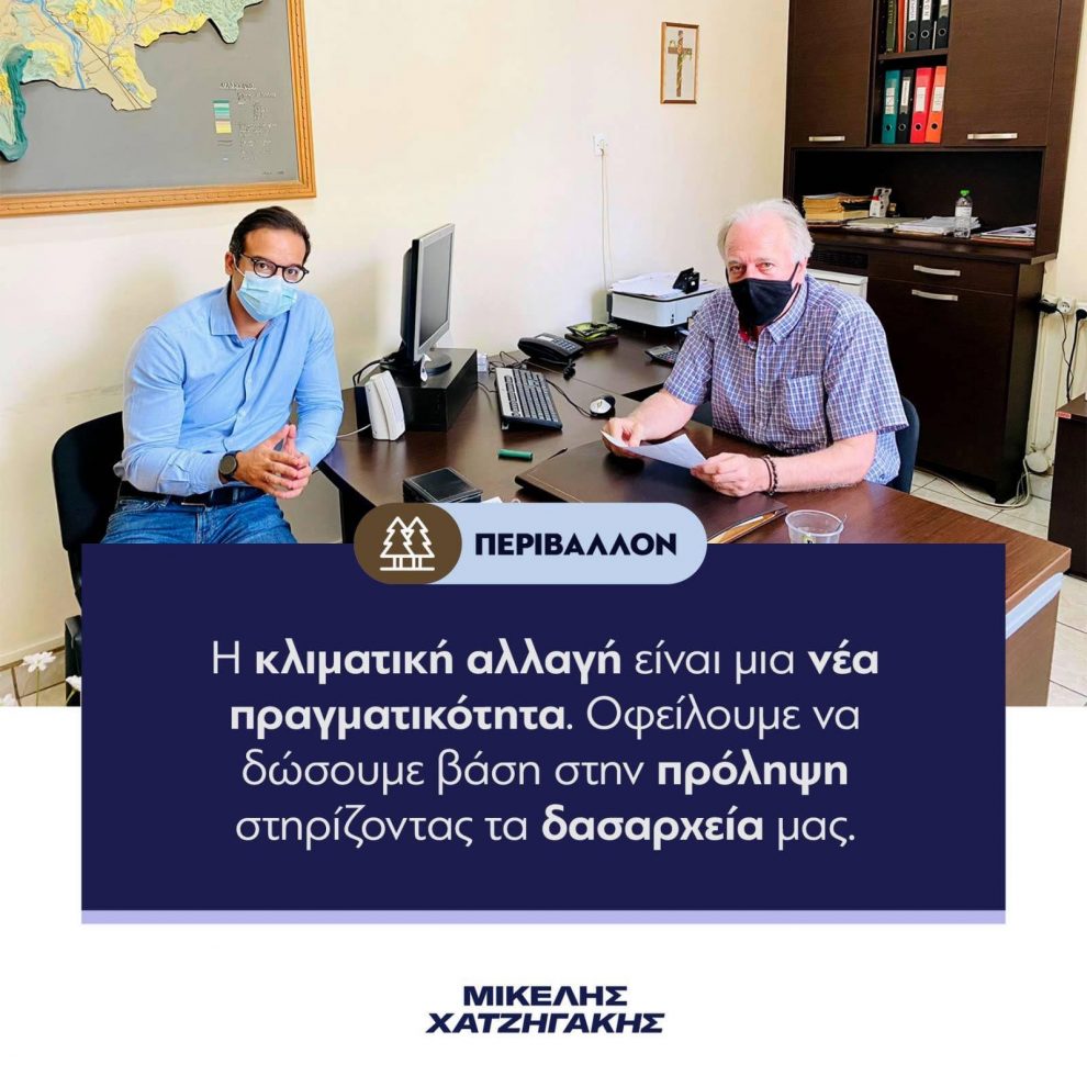 Μετά από τις πρόσφατες πυρκαγιές, συναντήθηκε με τον Χρήστο Πίσσια, επικεφαλής του 2ου μεγαλύτερου δασαρχείου της χώρας (από πλευράς παραγωγής δασικών προϊόντων και έκτασης υπό επίβλεψη) – αυτό της Καλαμπάκας. “Ο διευθυντής του δασαρχείου” λέει ο Μικέλης Χατζηγάκης “μου μίλησε για τα πολλά προβλήματα που αντιμετωπίζει το δασαρχείο (π.χ. προσλήψεις έχουν να γίνουν πάνω από μια 10ετία, πρόβλημα με τα οχήματα και την υλικοτεχνική υποδομή, κτλ) και για την ανάγκη στήριξης τους από την πολιτεία. Παρόλα τα προβλήματα και τις ελλείψεις, συνομιλώντας με τον δασάρχη και με το προσωπικό διαπίστωσα την αγάπη που έχουν αυτοί οι άνθρωποι για τα δάση μας και την ανάγκη να κάνουν σωστά την δουλειά τους έστω και με λιγοστά μέσα. Έχοντας κάνει δεκάδες επισκέψεις σε φορείς και οργανισμούς του δημοσίου μπορώ να καταλάβω τους ανθρώπους που απλά σου αναφέρουν τα όποια προβλήματα και τους ανθρώπους που «πονάνε» την δουλειά τους. Που έχουν πραγματική αγάπη και πηγαίο ενδιαφέρον για αυτό που κάνουν. Και οι άνθρωποι που είδα εκεί ανήκουν στην δεύτερη κατηγορία. Ευτυχώς. Ωστόσο, η αγάπη τους δεν φτάνει. Χρειάζονται και βοήθεια. Πως να επιβλέψουν σωστά, με τα λίγα άτομα που έχουν, πάνω από 2 εκατομμύρια στρέμματα δασικής έκτασης; Πως να λειτουργήσει σωστά το εργοστάσιο ξυλείας – που κάποτε ήταν από τα μεγαλύτερα στην Ελλάδα – με ένα υπάλληλο; Πως να λειτουργήσει ο πεστροφογεννητικός σταθμός στον Ασπροπόταμο χωρίς κανένα υπάλληλο; Οι ελλείψεις είναι τεράστιες και η πολιτεία οφείλει να στηρίξει τα δασαρχεία. Η κλιματική αλλαγή είναι μια νέα άγρια πραγματικότητα και άμα δεν δώσουμε βάση στην πρόληψη στηρίζοντας τα δασαρχεία μας μην απορούμε για τις καταστροφές που θα έρθουν”.