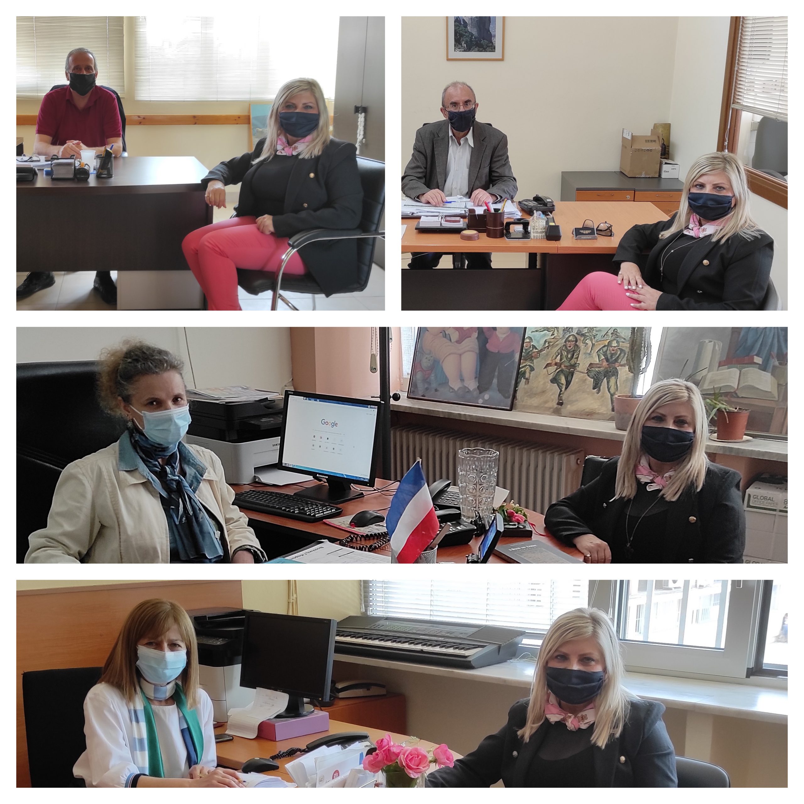Την Τετάρτη στις 12-05-2021 η Διευθύντρια Δ.Ε Τρικάλων κα. Ελένη – Μαρίνα Ξυνοπούλου πραγματοποίησε επίσκεψη στο 3ο Γυμνάσιο και το 9ο Γυμνάσιο Τρικάλων, καθώς επίσης και στο 5ο Γυμνάσιο και το 5Ο Λύκειο Τρικάλων. Εδώ και λίγες μέρες οι πόρτες των σχολείων άνοιξαν για όλους τους μαθητές της Δευτεροβάθμιας Εκπαίδευσης και η Διευθύντρια με αυτοπρόσωπη παρουσία θέλησε να διαπιστώσει την ομαλή λειτουργία των σχολικών μονάδων. Συνομίλησε με τους Διευθυντές και τους Συλλόγους Εκπαιδευτικών για τη διενέργεια του “self testing” και άλλα προβλήματα της μαθητικής και καθηγητικής κοινότητας. Η Διευθύντρια πάντοτε προτιμά τη δια ζώσης και διαρκή επαφή της με όλους τους εκπροσώπους της Δευτεροβάθμιας Εκπαίδευσης, προκειμένου να έχει μια πιο εμπεριστατωμένη άποψη και ολοκληρωμένη εικόνα για τυχόν προβλήματα που υπάρχουν ή προκύπτουν.