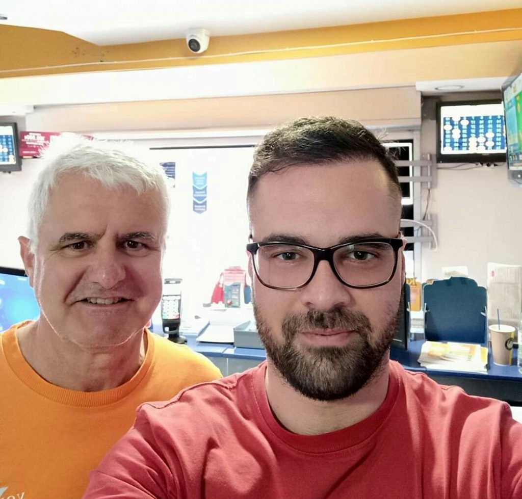 Στη φωτογραφία παραπάνω διακρίνονται Στέφανος και Νίκος Πιάζας, οι οποίοι υποδέχθηκαν με χαμόγελο χθες στο πρακτορείο τους επί της οδού Νταή τους παίκτες.