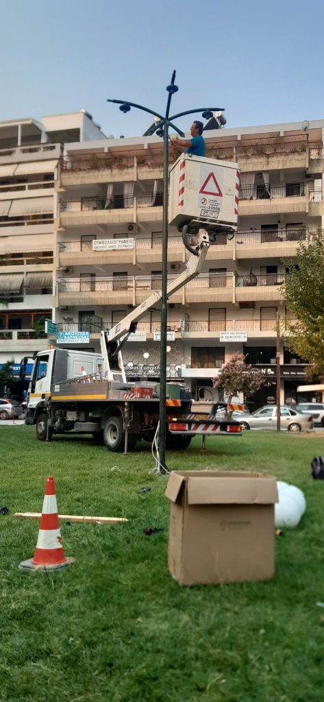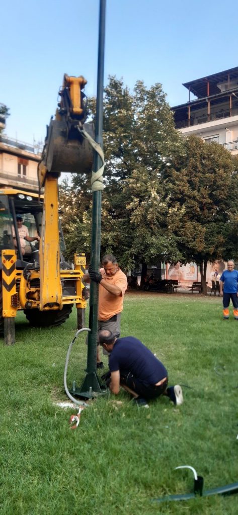 Ένας σύγχρονος φανοστάτης, με λάμπες τελευταίας γενιάς, τοποθετήθηκε το πρωί της Τρίτης στο κέντρο της πλατείας του παλαιού ΚΤΕΛ στα Τρίκαλα.
