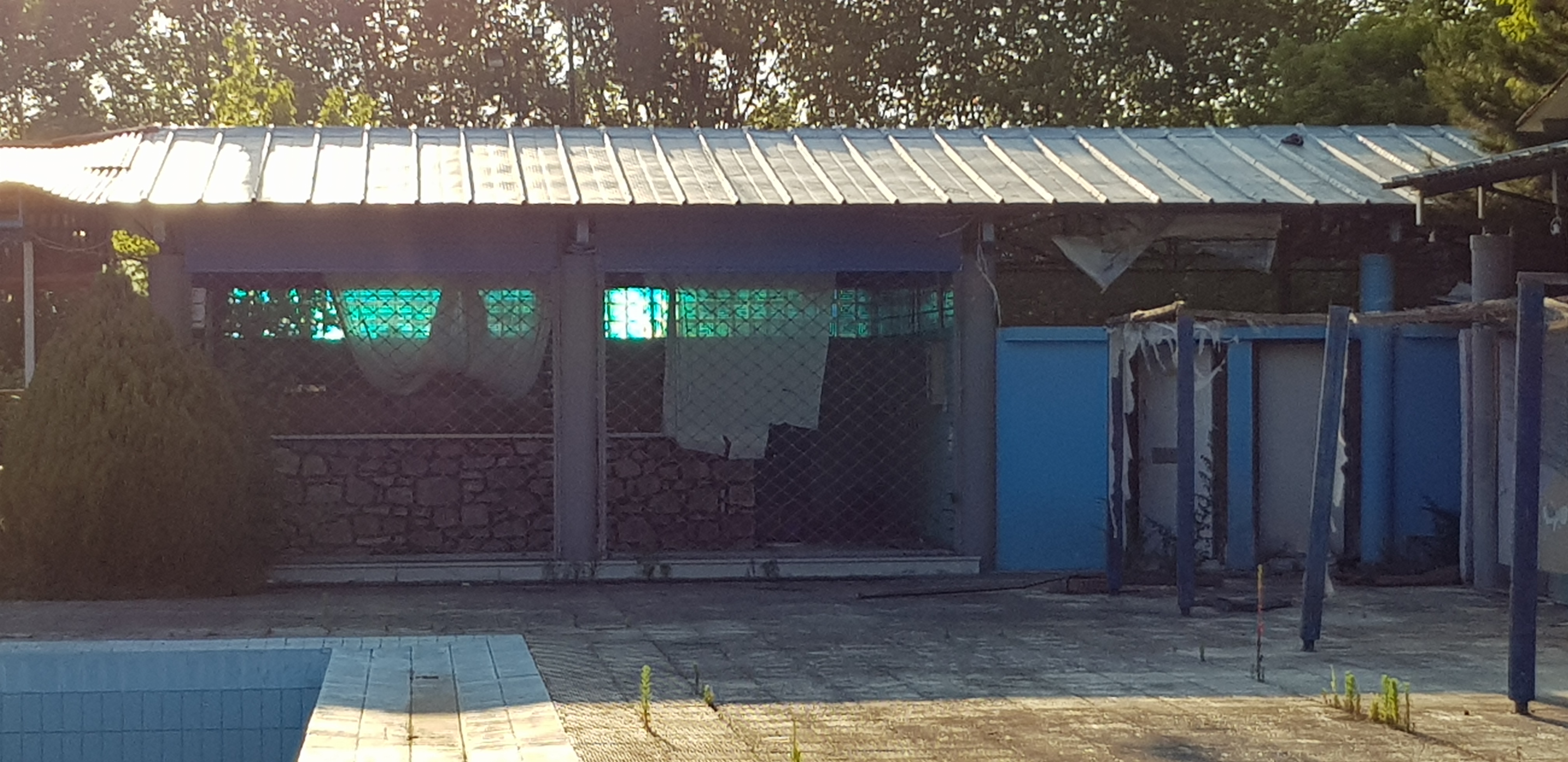 Δίπλα από τους εκατοντάδες Τρικαλινούς που αθλούνται καθημερινά στο πάρκο στέκει το… φάντασμα του πρόσφατου παρελθόντος, το αναψυκτήριο-πισίνα.