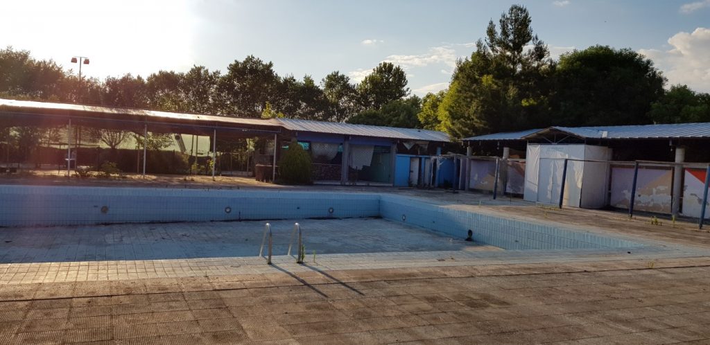 Δίπλα από τους εκατοντάδες Τρικαλινούς που αθλούνται καθημερινά στο πάρκο στέκει το… φάντασμα του πρόσφατου παρελθόντος, το αναψυκτήριο-πισίνα.