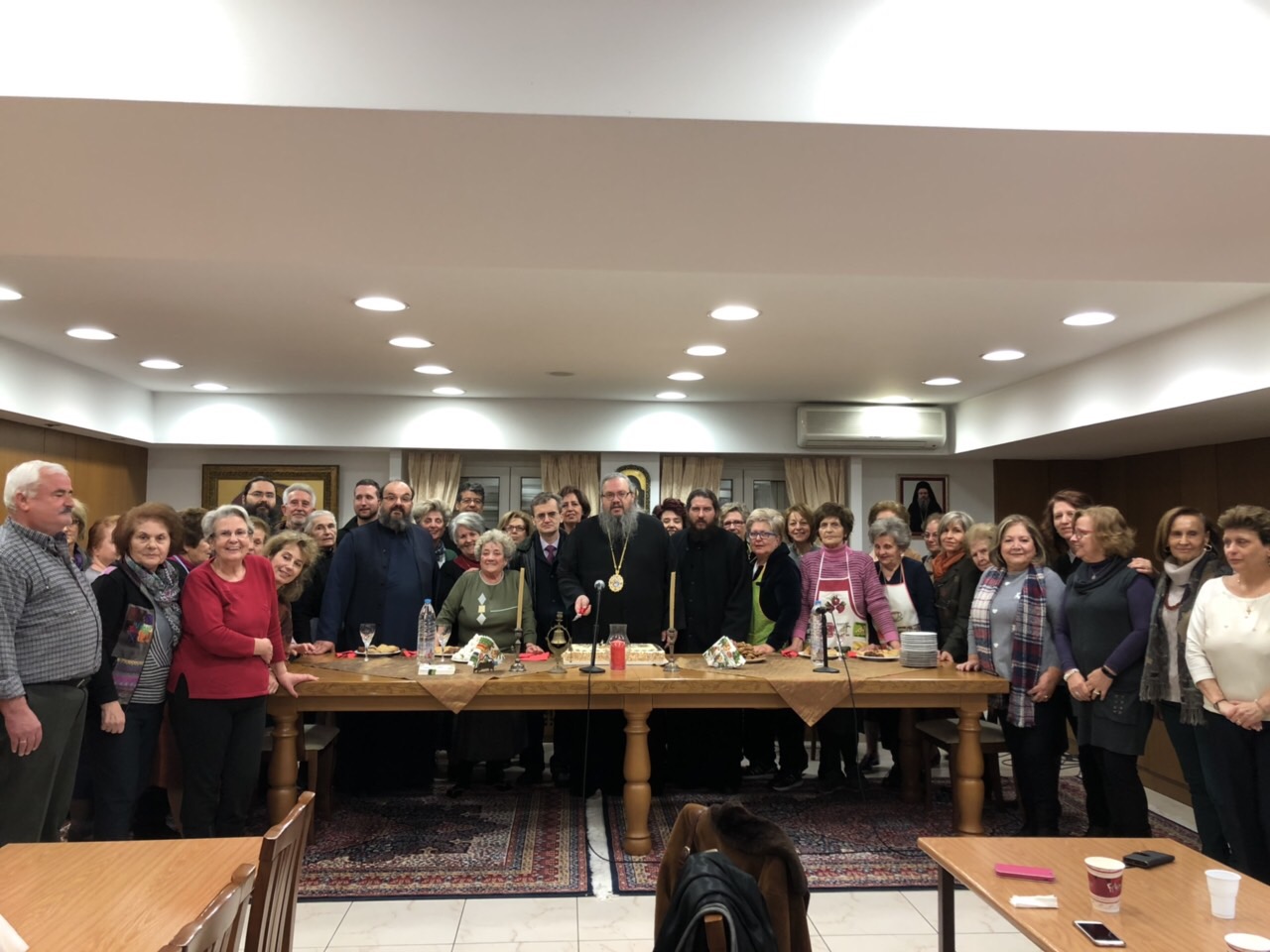 Καθημερινά οι φιλάνθρωπες κυρίες προσφέρουν ανιδιοτελώς τις υπηρεσίες τους προκειμένου οι ενδεείς αδελφοί μας να έχουν ένα ζεστό πιάτο φαγητού. Κοντά τους σήμερα βρέθηκε και ο Μητροπολίτης μας κ. Ιερώνυμος, ο οποίος τις ευχαρίστησε για την εθελοντική τους προσφορά, ευλόγησε τη βασιλόπιτα τους και διένειμε και μία ευλογία προς όλους.