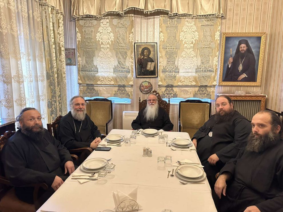 Οι δυο Αρχιερείς συζήτησαν κατ’ ιδίαν τα εκκλησιαστικά ζητήματα, ενώ παρέστη στην αίθουσα του θρόνου και ο γραμματεύς της Μητροπόλεώς μας πατέρας Γεώργιος Γραδούλας, πνευματικό ανάστημα του γέροντος Αυλώνος. Όπως κατέγραψε το trikalavoice.gr προς τιμήν του Λόγιου Αρχιερέα, ο οποίος θα χοροστατήσει και θα ιερουργήσει όλες τις Δεσποτικές και μεγάλες εορτές του Δωδεκαημέρου ( Πρωτοχρονιά και Θεοφάνεια) στον Μητροπολιτικό Ναό Αγίου Νικολάου, παρατέθηκε εόρτια τράπεζα στην οποία παρακάθισαν επίσης ο παρεπιδημών στη Μητρόπολή μας, ιεροκήρυκας της Μητροπόλεως Εδέσσης, π. Χερουβείμ, ο εφημέριος του Ι.Ν. Αγίου Κωνσαντίνου, π. Νικόδημος και ο εφημέριος του χωρίου των Μεγάλων Καλυβίων π. Παρθένιος.