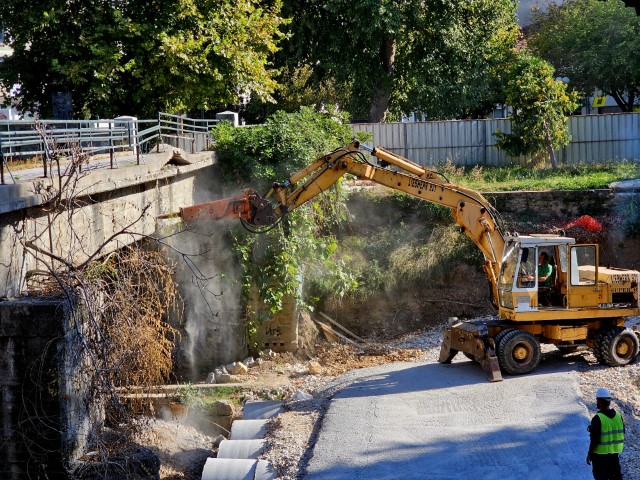 Ξεκίνησαν το πρωί της Τετάρτης οι εργασίες κατεδάφισης της γέφυρας Μαρούγγενας στο κέντρο των Τρικάλων.
